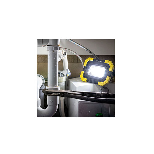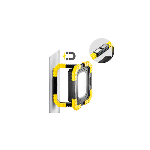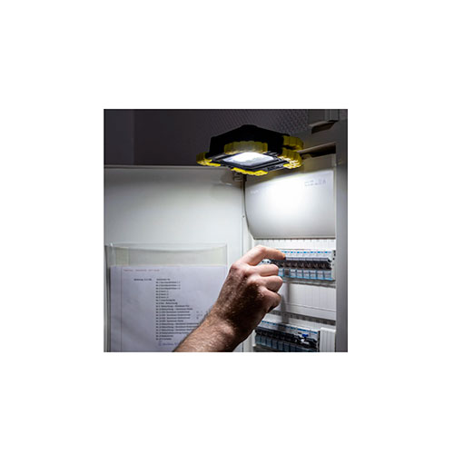 IP44 stænktæt armatur er designet til barske omgivelser og har stødsikker kantbeskyttelse. Praktisk: Bærehåndtaget, som kan justeres i seks trin 180 °, fungerer også som en stabil base til præcis belysning af arbejdsområdet. Denne variation suppleres med en stærk magnetisk holder – ideel til sikkert at fastgøre arbejdslampen til metaloverflader.
