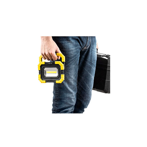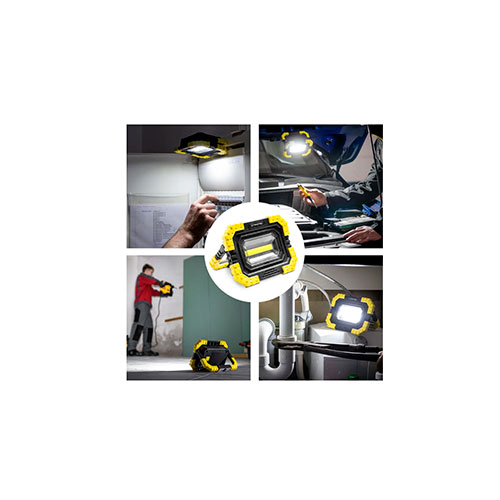 Med en ydelse på 10 watt giver arbejdslyset dagslys hvidt lys med en farvetemperatur på 6.000 K med en belysningsvarighed på ca. 3-9 timer (afhængigt af driftstilstand). Den integrerede COB-overflade-LED sikrer særlig jævn og stærk lysstråling. Få flere oplysninger om fordelene ved COB LED-teknologi nedenfor.