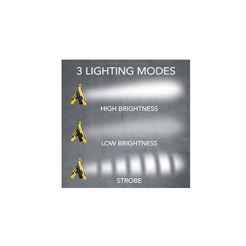 - 3 belysningstilstande: høj lysstyrke, lav lysstyrke, strobetilstand