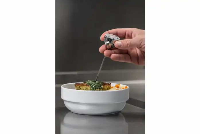 Minitermometret er vandtæt (IP 67) og kan anvendes til målinger i luft, bløde materialer, pulver og væske.