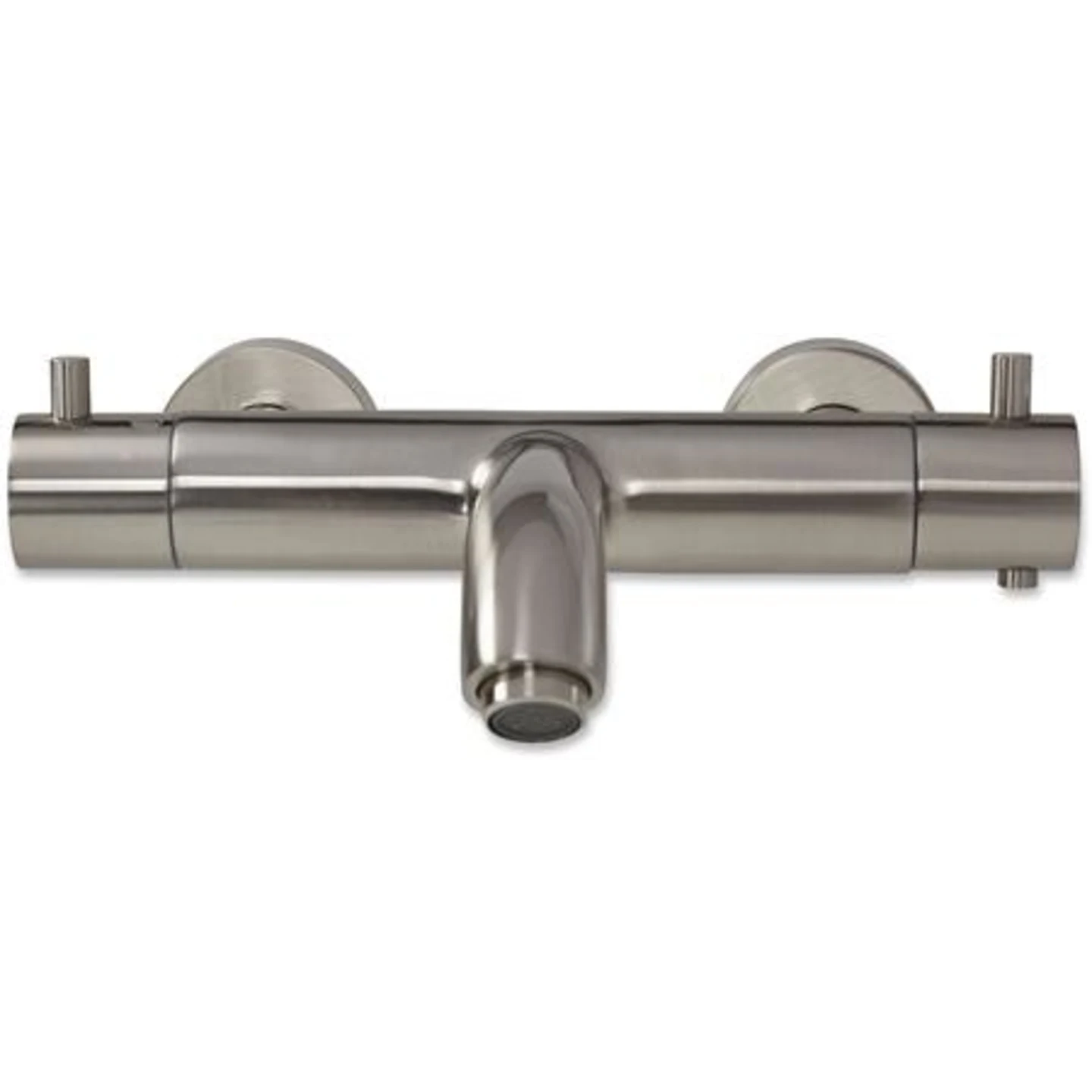 Dette termostatarmatur kombinerer funktionalitet med et stilrent design i børstet nikkel. Perfekt til både karbad og bruseområder, hvor der ønskes en ensartet vandtemperatur.