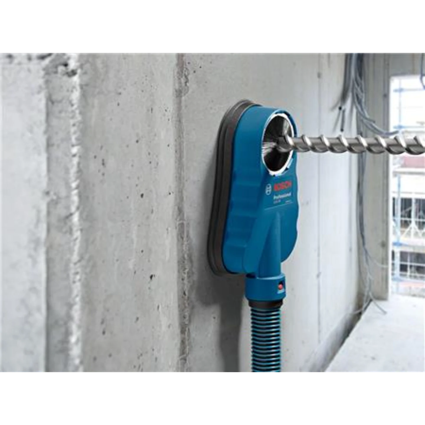 Den universelle og brugervenlige støvudsugningsløsning til boring af større diametre. Klæber sig til væggen via undertryk genereret af vakuum – ingen tunge eller hæmmende systemer på selve boremaskinen. Fungerer med alle typer boremaskiner (hamre, slagboremaskiner, diamantbor, også våde) og støvsugere. Bedre beskyttelse af sundheden og mindre tidsforbrug til rengøring.