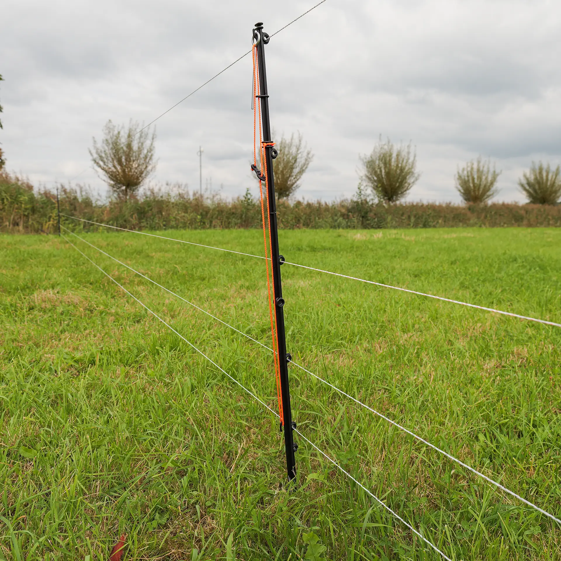 - Systemet omfatter: 4 tråde, 10 stolper, 100 m længde (330ft)