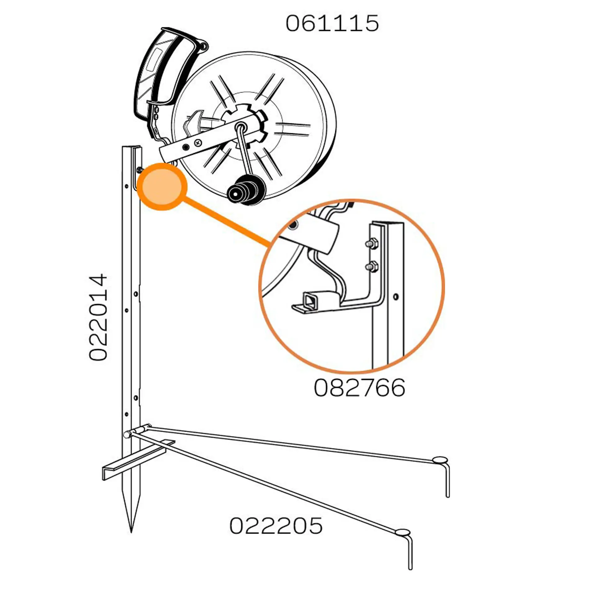 Stativ til midlertidige hegn. Kan bruges til 3-4 spoler eller 3-4 isolatorer. Fodbøjle i galvaniseret stål. Vinkeljern til yderligere strukturel støtte kan købes separat. (022205).
