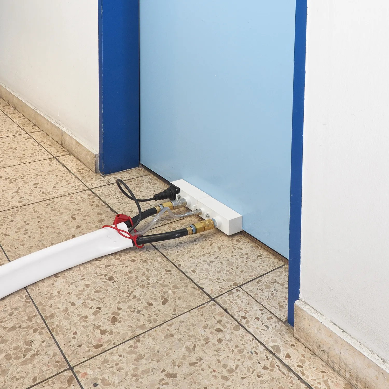 Ved sådanne situationer er PlanoPT Underdørs-forbindelsestilslutning en ideal og tidssparende løsning! Med underdørs forbindelsestilslutning PlanoPT er det muligt også under dører at installere tidssparende forbindelsessæt mellem vandafkølede PT-klimaanlæg og deres ekstreme varmevekslere – med op til 40 m samlet forbindelseslængde.