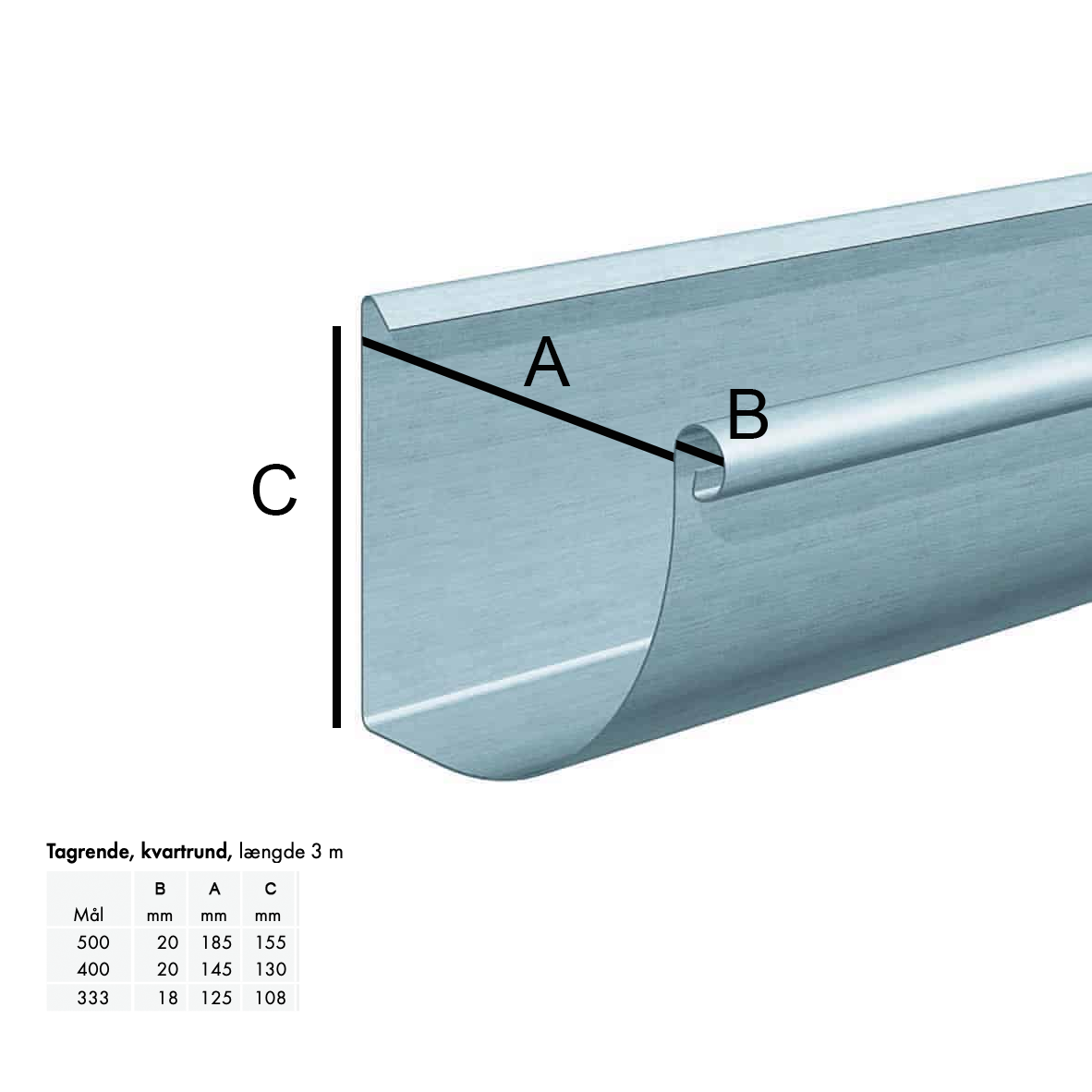 Rheinzink kvartrund tagrende pakke 400 mm – Tast selv