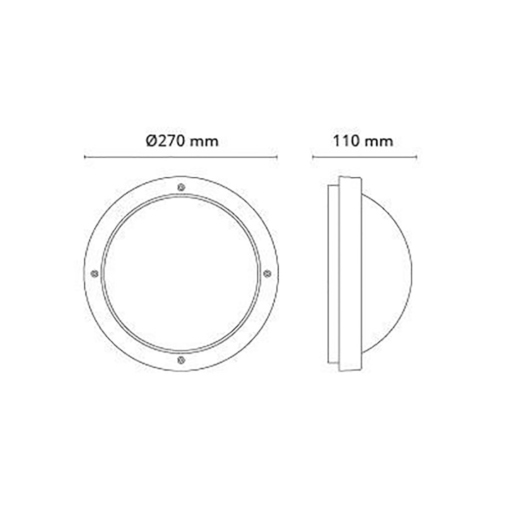 – IK10 vandal sikkert, IP65, Ø270, Godkendt til fælles adgangsveje