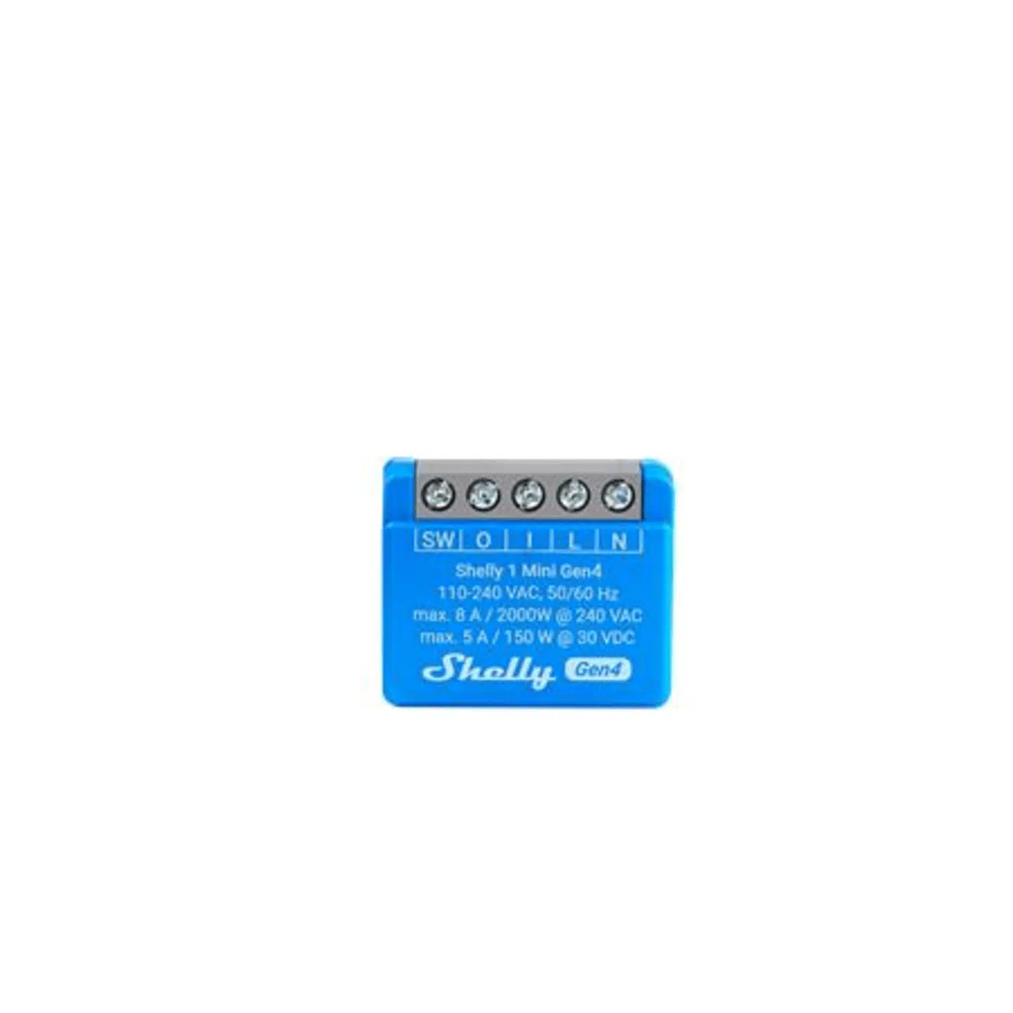 Shelly 1 Mini Gen4 er verdens mindste smarte relæ med potentialfrit kontaktsæt, der understøtter WiFi, Bluetooth og Zigbee. Den er designet til montering bag afbryderen, stikkontakten eller lampeudtaget, hvilket giver nem betjening og automatisering af lys, garageporte, vandingssystemer, ventilatorer og lignende.