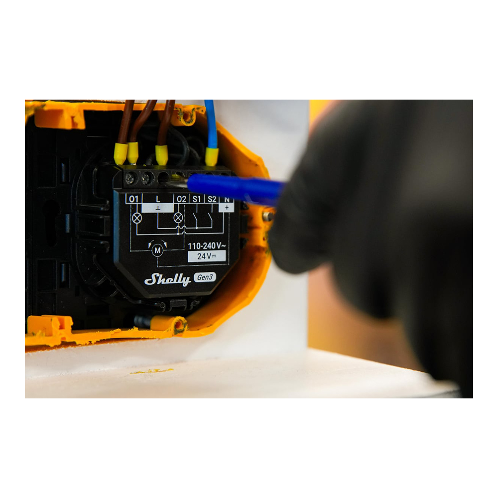 Shelly 2PM Gen4 er beregnet til montering bag afbryderen, stikkontakten eller lampeudtaget og giver nem betjening og automatisering af lys, ventilatorer, rullegardiner, persienner, markiser og andre 2-vejs AC-motorer. Takket være det kompakte design er den nem at installere i væg- og loftsdåser. De to integrerede effektmålere giver samtidig mulighed for at måle forbruget for hver kanal separat hvorfor enheden også er oplagt til styring af to kanaler lys eller to stikkontakter. Enheden kan belastes med op til 10A per kanal og maksimalt 16 A i alt.