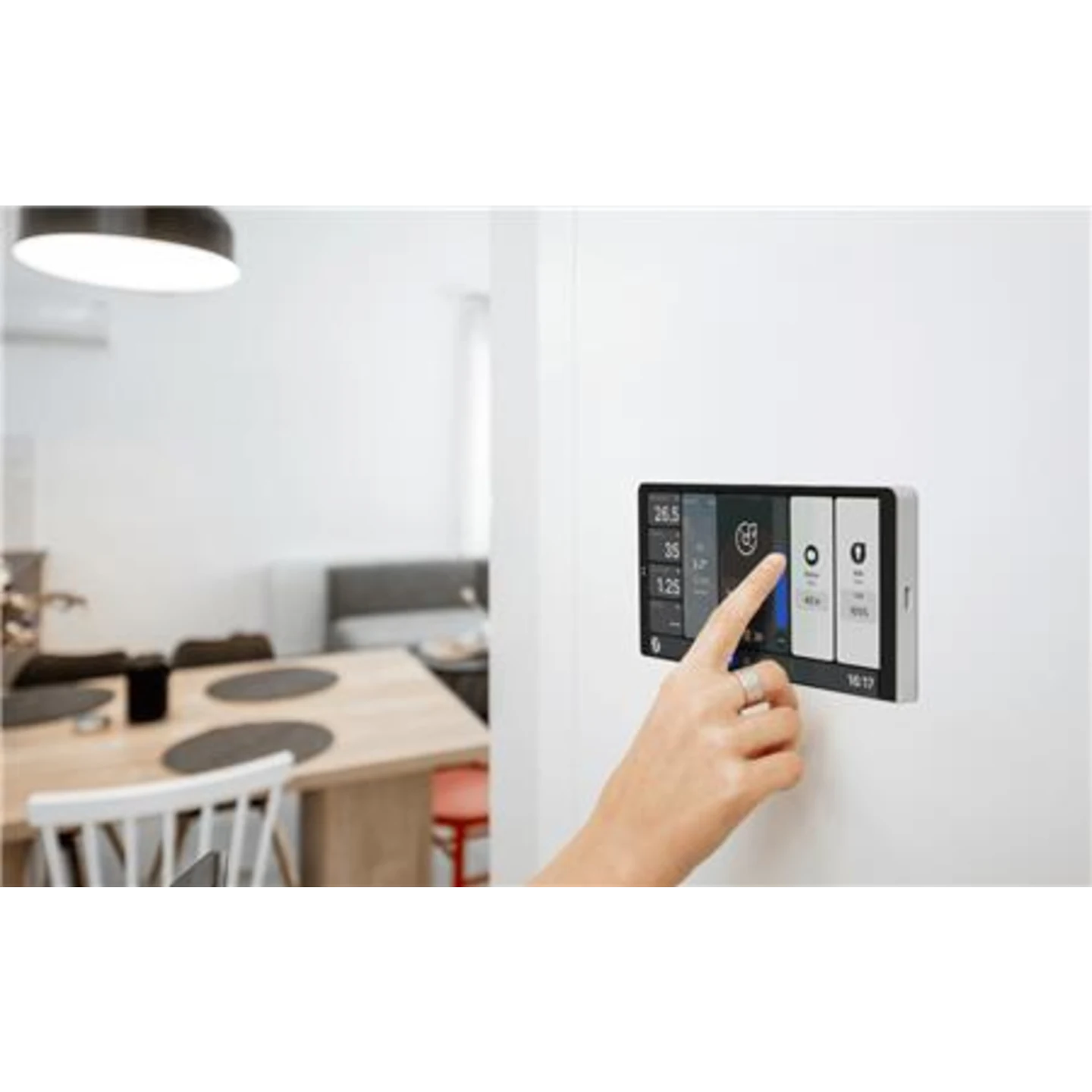Shelly Wall Display er en 6,95” Android-baseret touchskærm, der giver problemfri kontrol over dit hjem eller kontor. Med et minimalistisk design, elegant brugergrænseflade og brugerdefinerlig startskærm passer Shelly Wall Display ikke kun perfekt ind i dit interiør, men kan også skræddersys til at passe til ethvert rums behov. Denne skærm er næsten dobbelt så stor som den klassiske Wall Display, men passer stadig i en standard europæisk el-boks. Den kræver kun en 230V strømforsyning og en WiFi-forbindelse for at fungere. Skærmen kan monteres vandret eller lodret, afhængigt af dine præferencer og den tilgængelige plads.