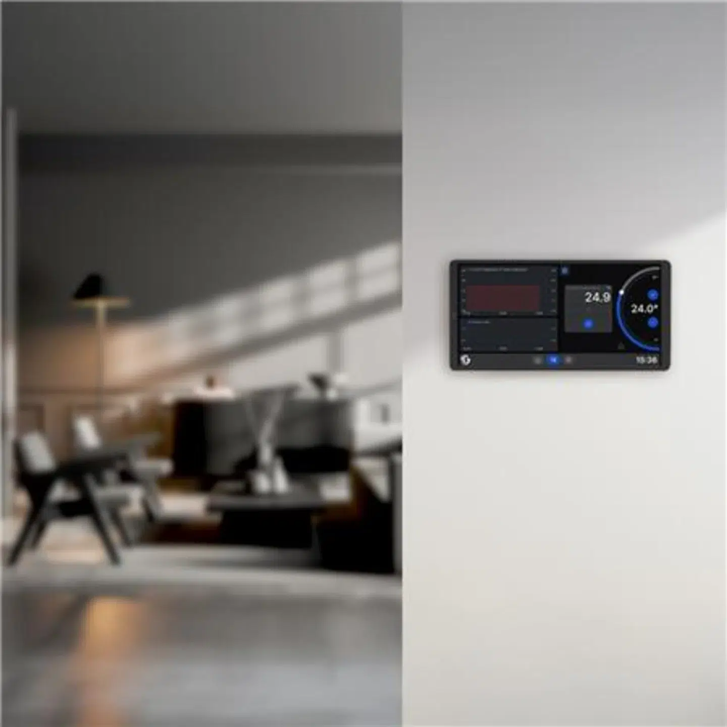 Integreret kontrol: Brug Shelly Wall Display til at administrere Bluetooth- og Sonos-højttalere, justere termostaten for rumtemperatur og overvåge realtids energiforbrug, rumtemperatur og luftfugtighedsniveauer.