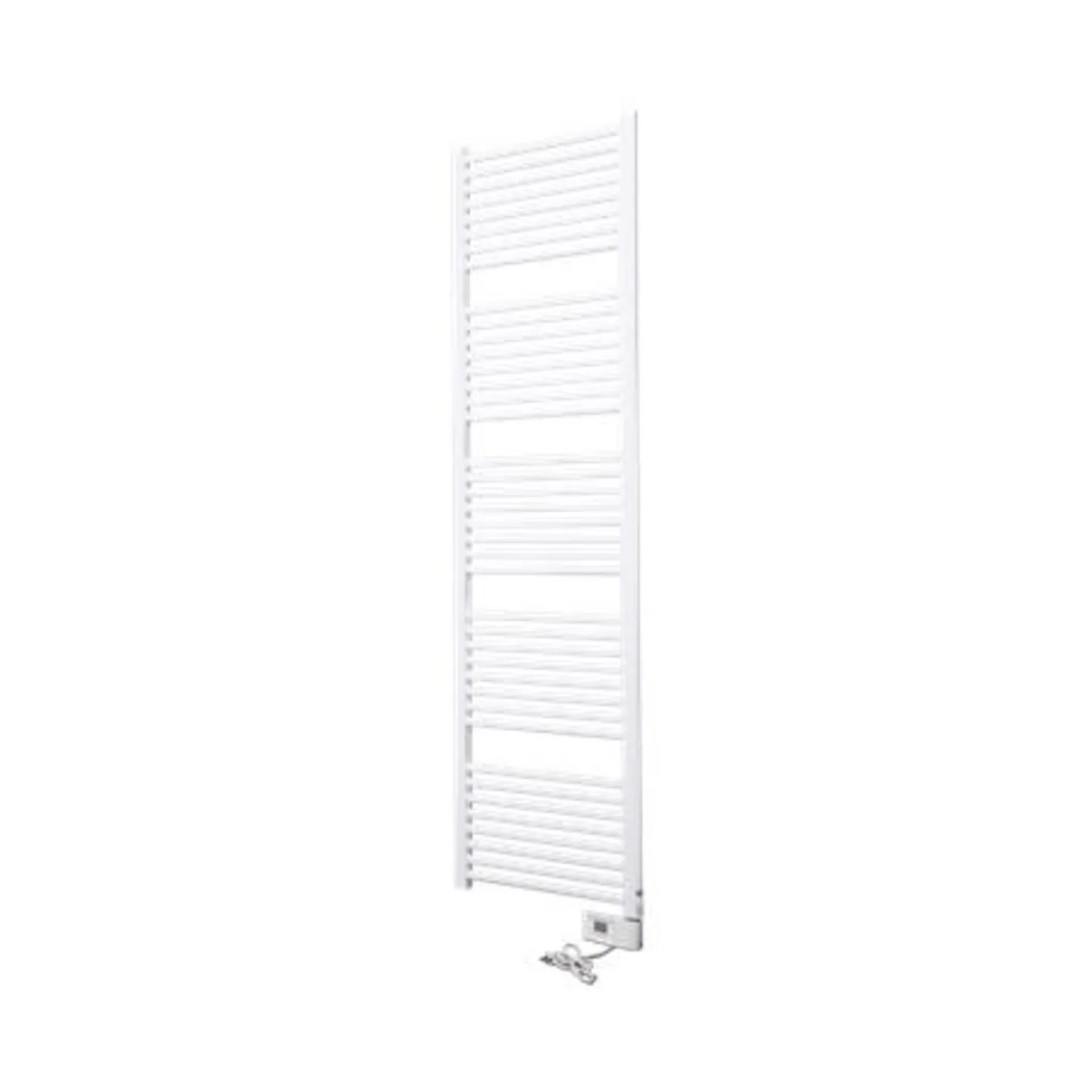 Thermrad CORE-E elektrisk håndklæde radiator i hvid (RAL 9016) med dimensionerne 1806×500 mm og en effekt på 1000W. Denne radiator er ideel til badeværelser og andre rum, hvor der ønskes en kombination af opvarmning og tørring af håndklæder.