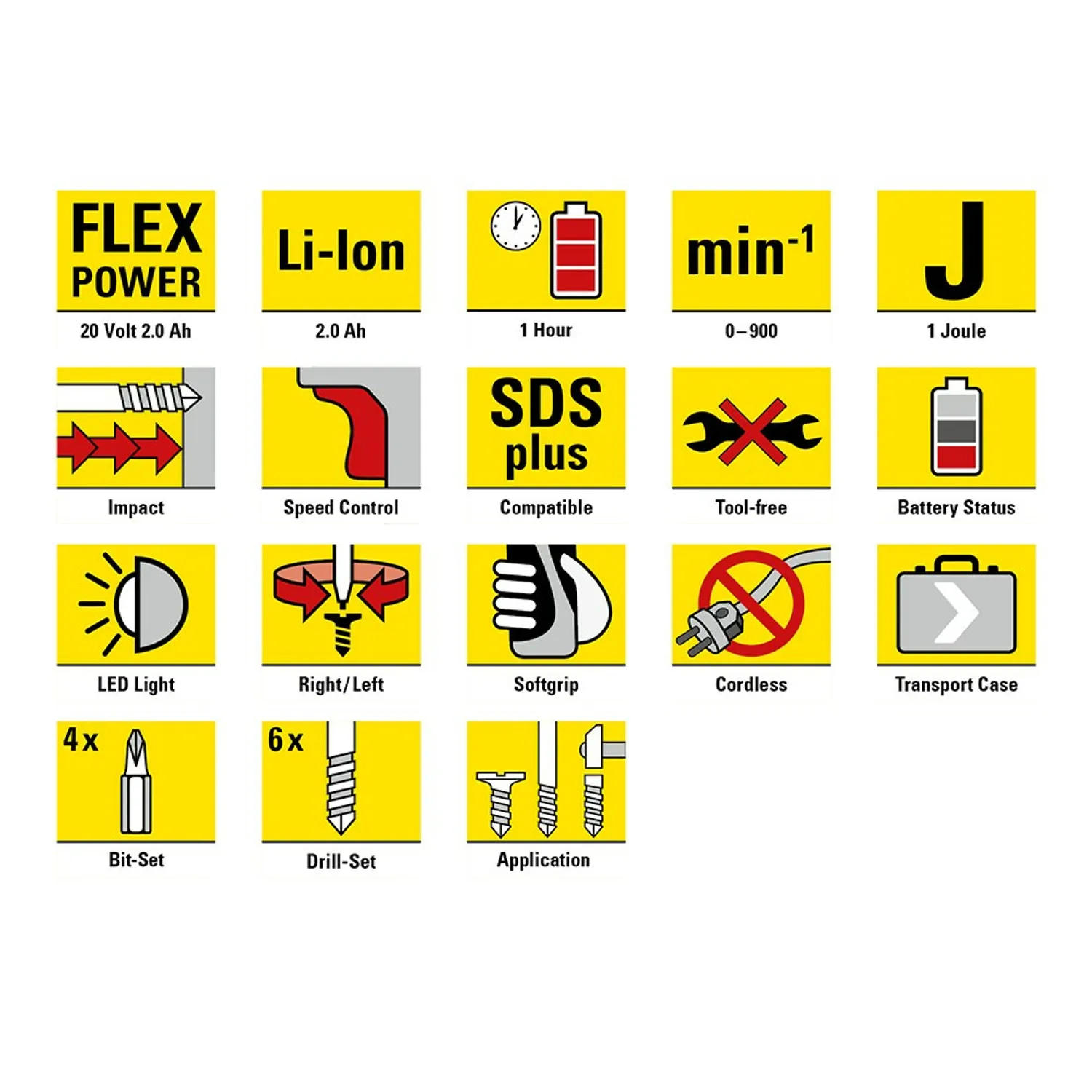 - Kraftfuld skrue- og boreanvendelser i træ og metal samt hammerboringer i murværk og beton