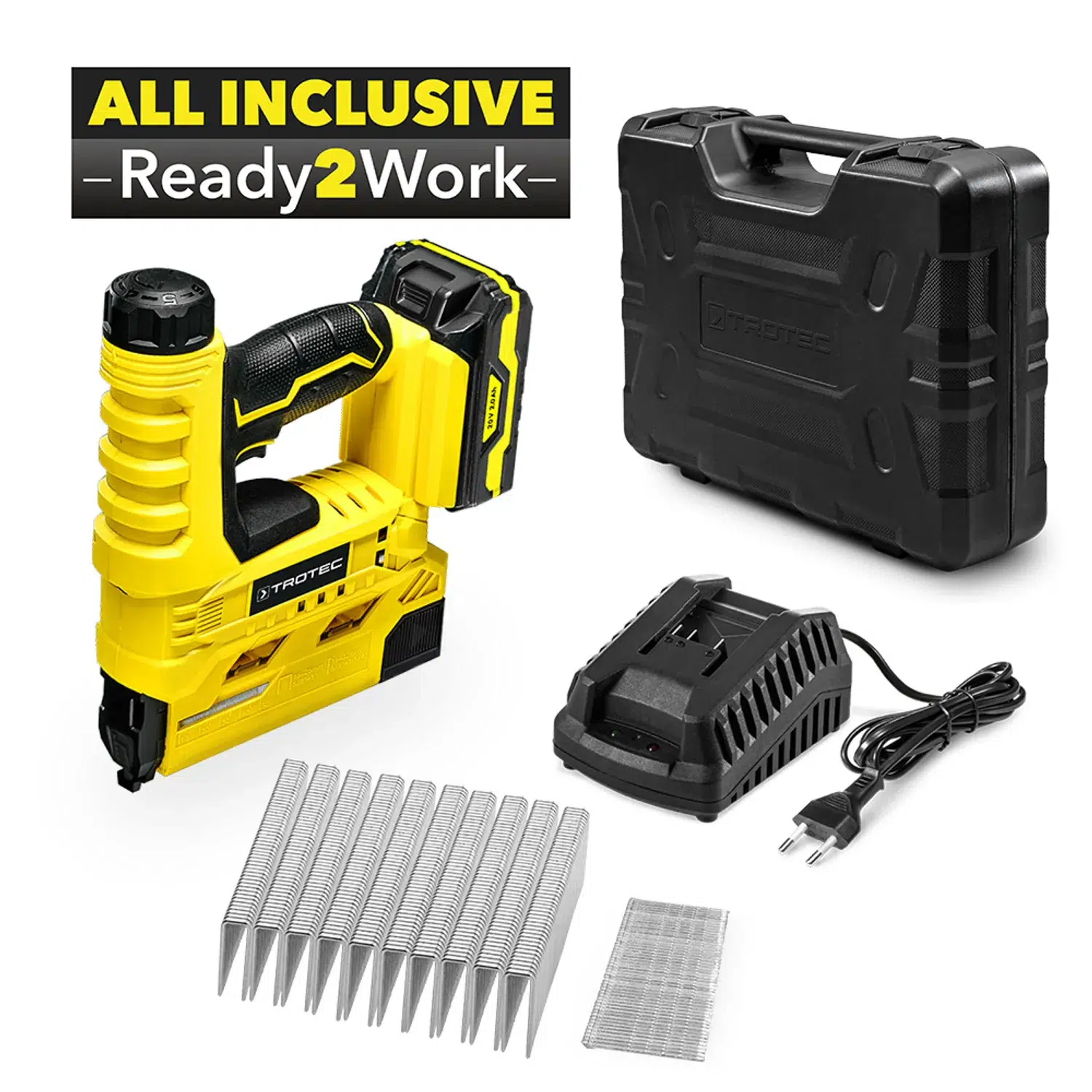 - Trotec-mærke kvalitet med dobbelt sikkerhedscertificering til trådløs tacker og oplader