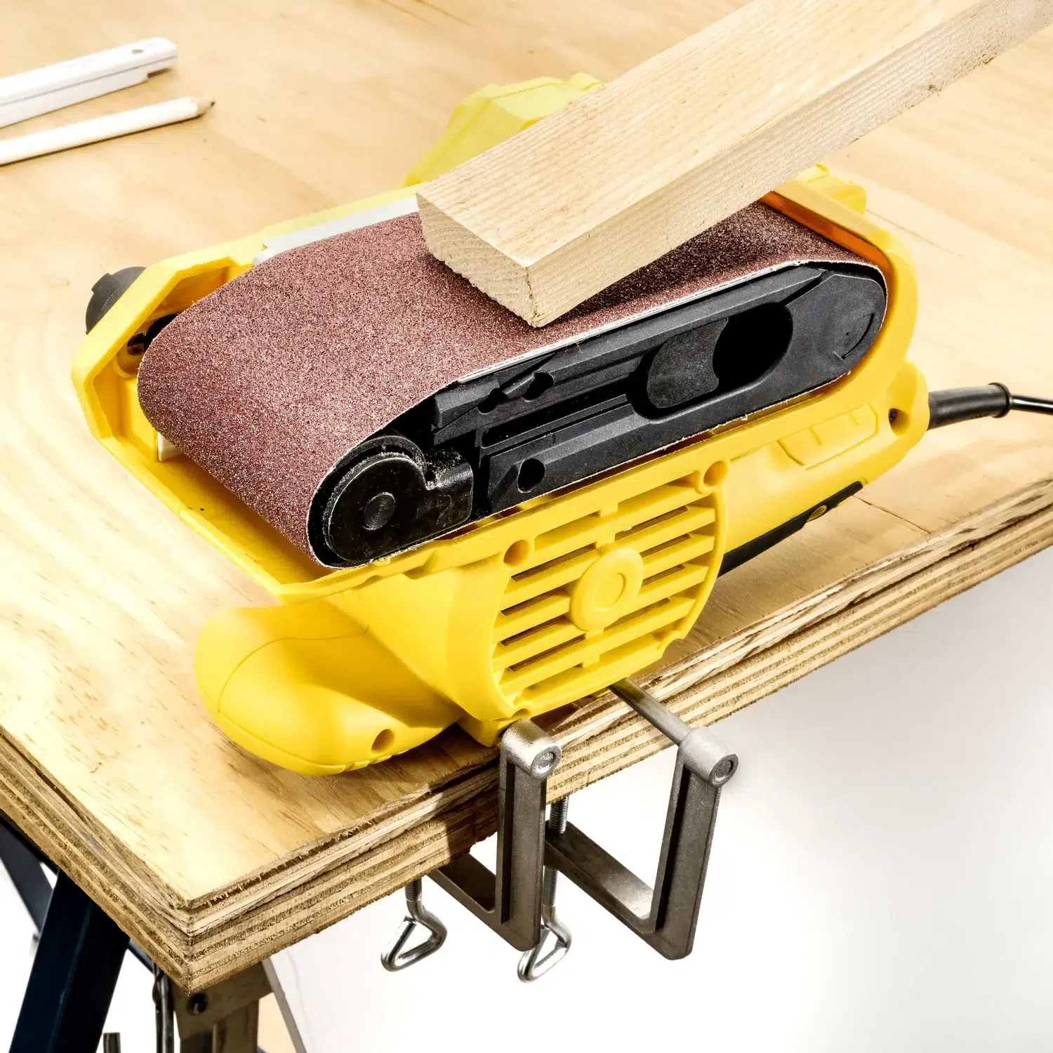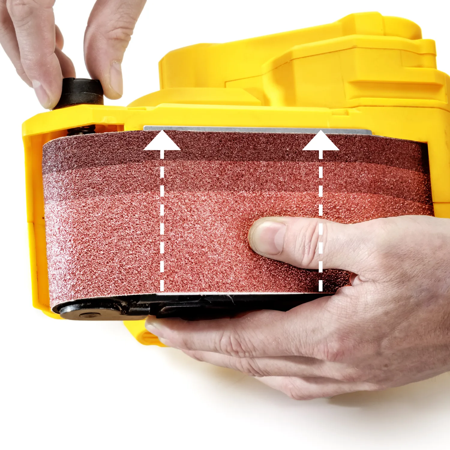 - Passer til almindeligt tilgængelige slibebånd (76 x 457 mm)