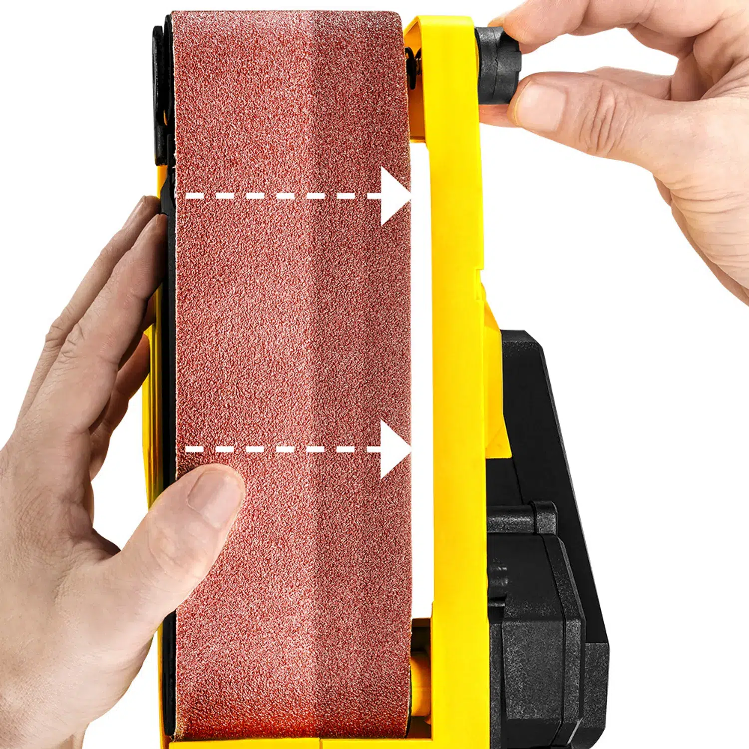 - Passer til almindeligt tilgængelige slibebånd (76 x 533 mm)