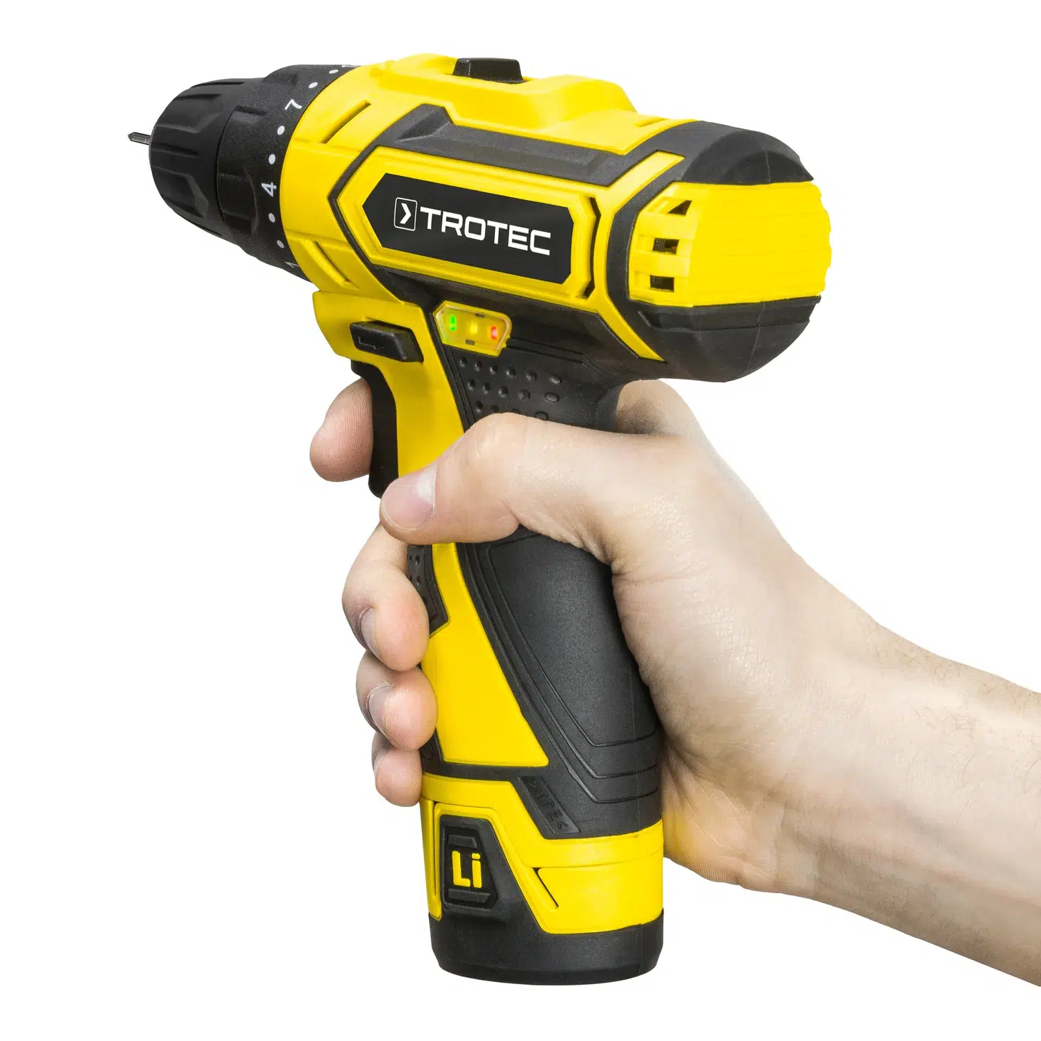 Effektiv og pålidelig Trotec batteridrevet bore-/skruemaskine med 12V motor. Inkluderer batteri og oplader. Ideel til både gør-det-selv og professionelle opgaver.