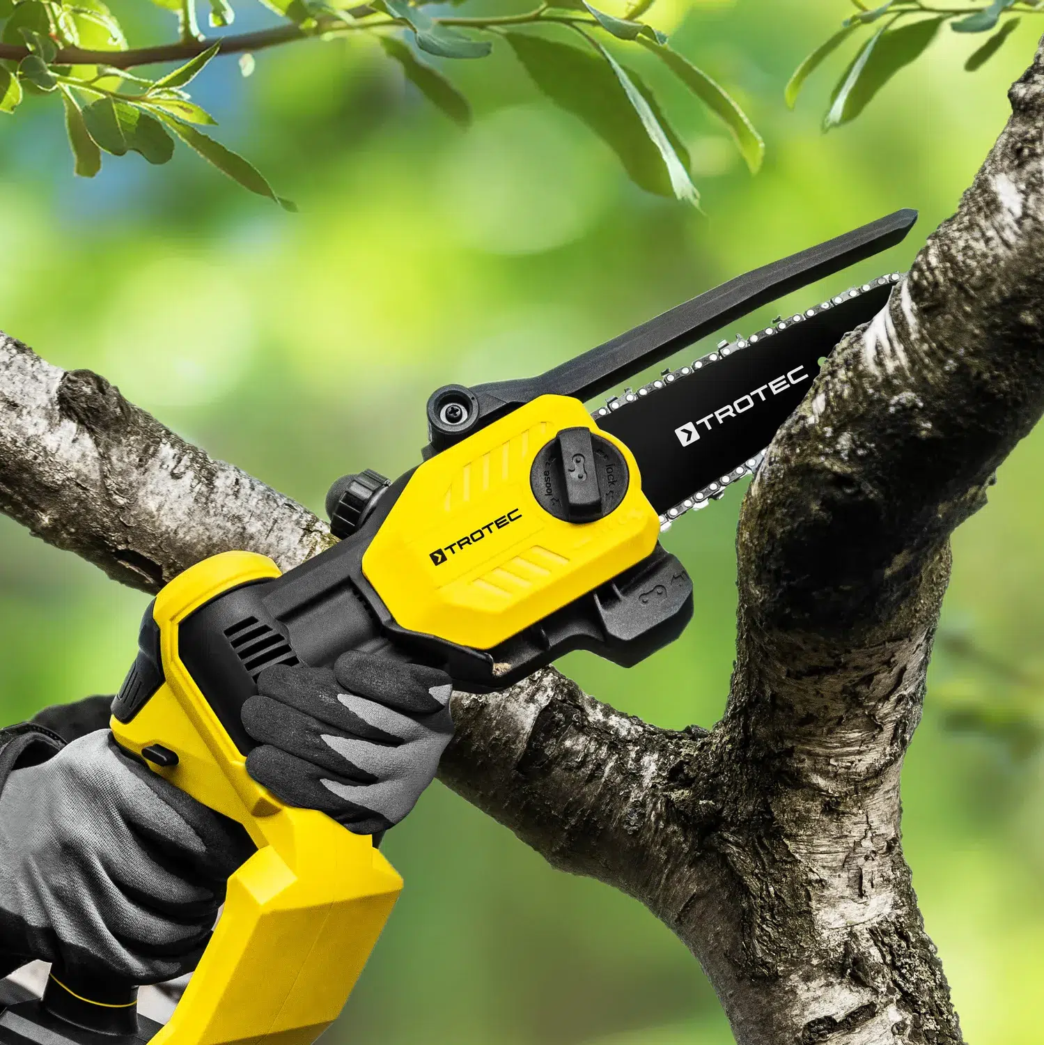 Der er mange gode grunde til at bruge den batteridrevne PCHS 10-20V. Takket være den kraftige elmotor er kædesav på ingen måde dårligere end benzindrevne modeller med hensyn til ydeevne. benzindrevne modeller med hensyn til ydeevne – men scorer med en betydeligt lavere vægt og lettere betjening. Hvad mere er, PCHS 10-20V en ende på støjforurening og ubehagelige benzinlugte. Sammenlignet med Sammenlignet med motorsave med forbrændingsmotorer, som udleder emissioner, der er skadelige for miljøet, arbejder den batteridrevne kædesav behageligt stille og 100 % emissionsfri.