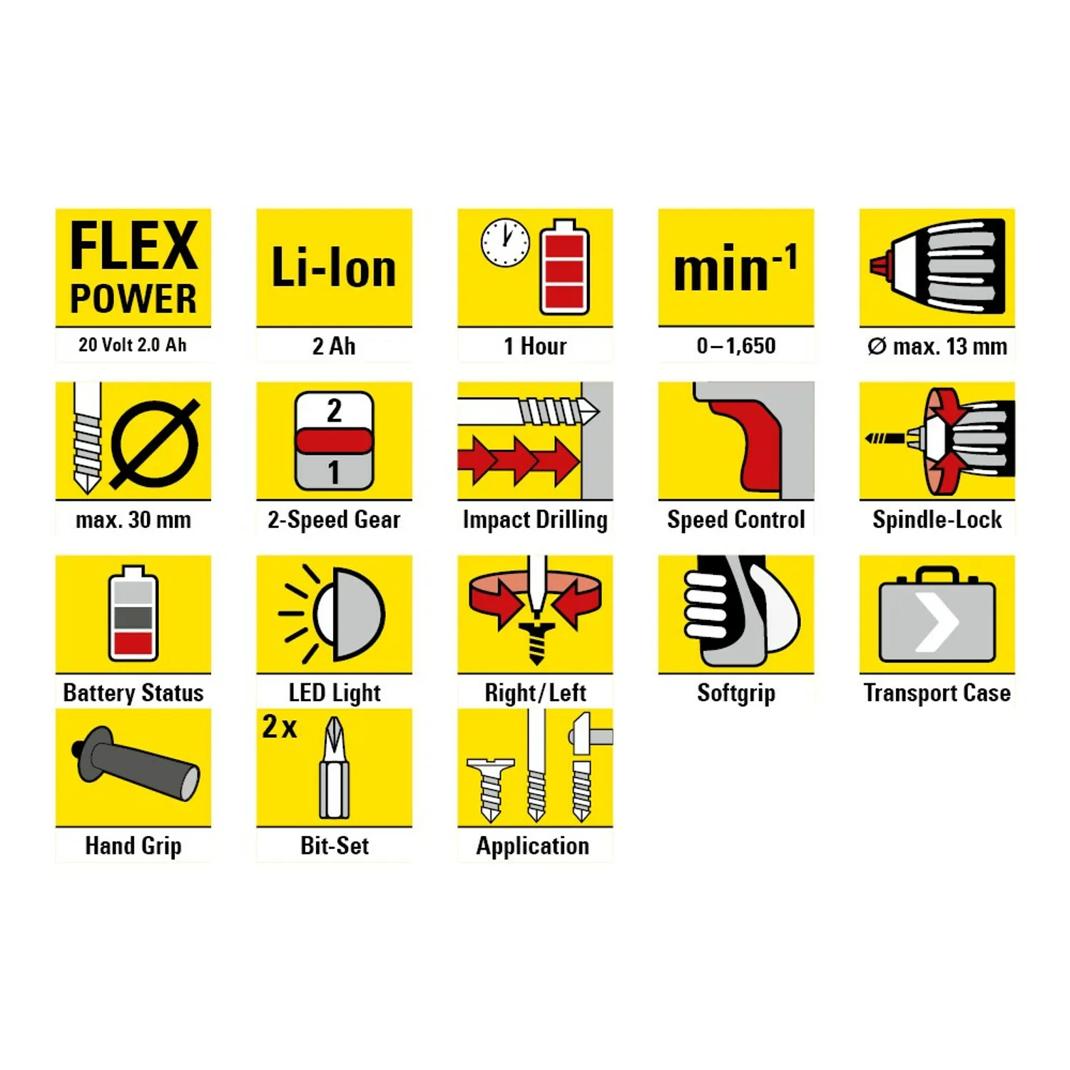 Kraftfuld og alsidig batteridrevet slagboremaskine med 20V kapacitet. Ideel til DIY-projekter derhjemme eller på arbejdspladsen. Inkluderer batteri og oplader for øjeblikkelig brug.