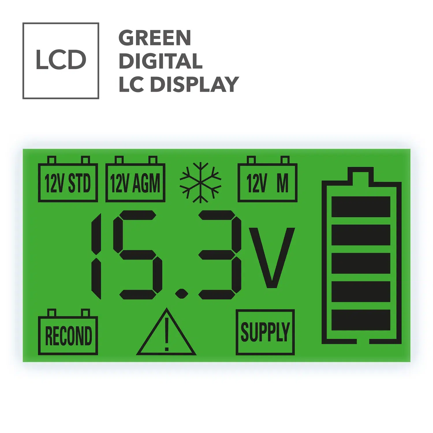 - Seks justerbare programmer (standardopladningstilstand, AGM-tilstand, vinteropladningstilstand, vedligeholdelsestilstand, rekonditioneringstilstand, forsyningstilstand)