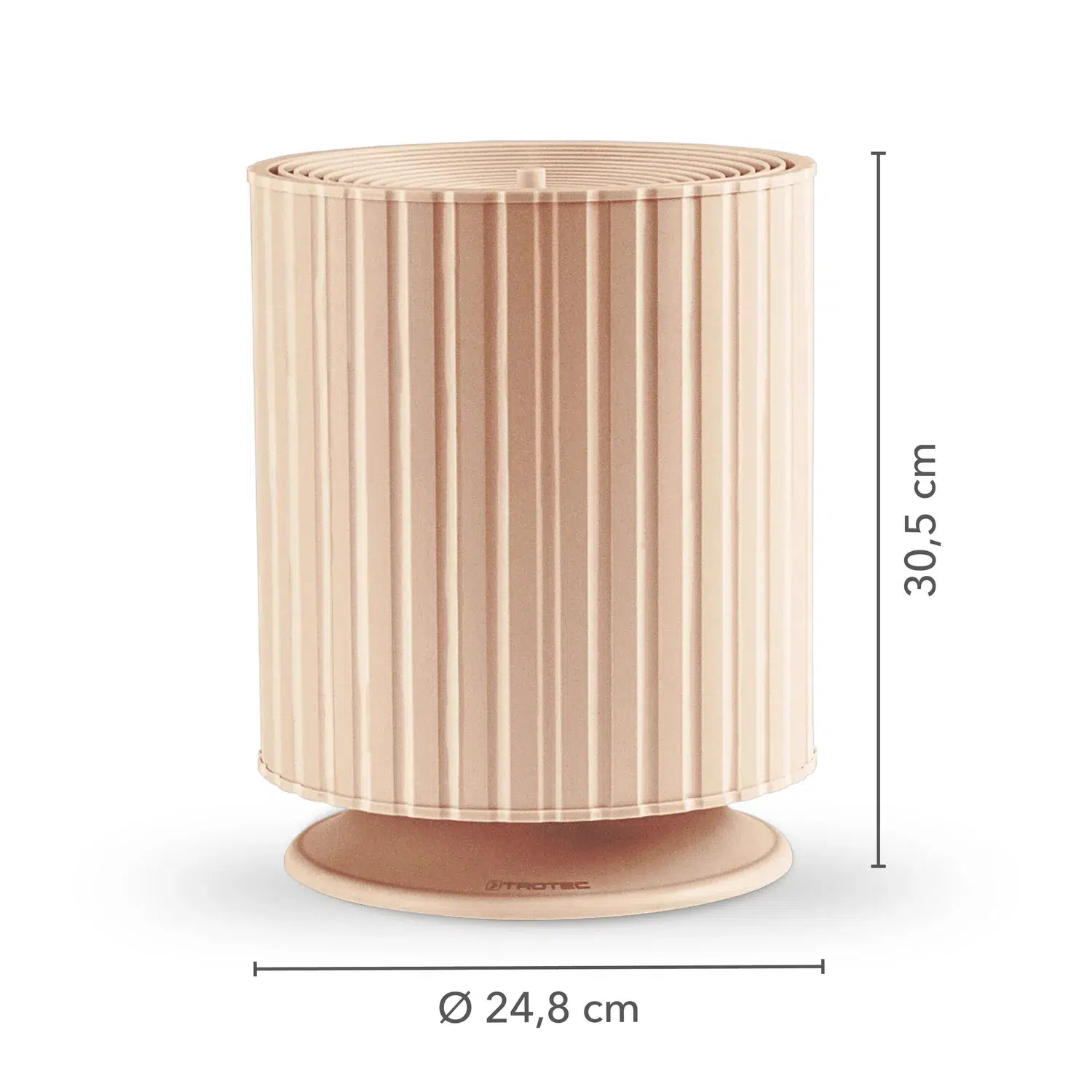 Luftfugteren B 24 E sikrer et behageligt rumklima gennem naturlig fordampning. Med sit elegante design af høj kvalitet i farven “champagne” sætter den stilfulde accenter i hjemmet, på kontoret eller i wellnessområdet.