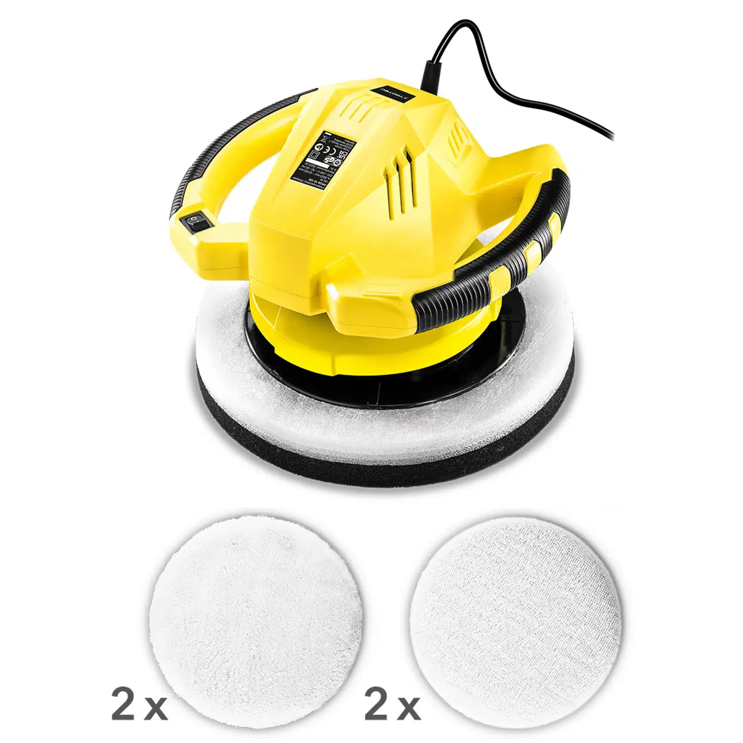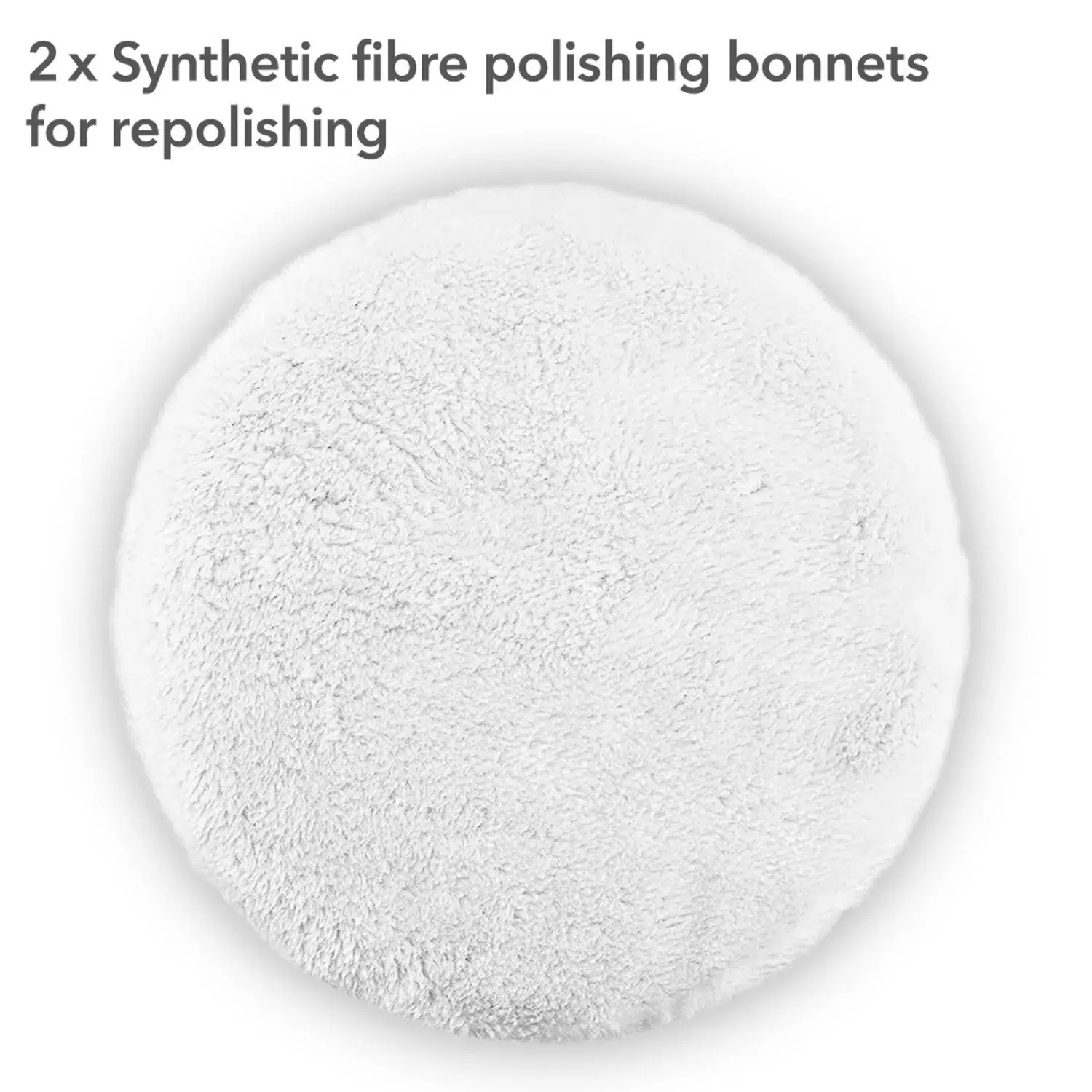 Standardleverancen omfatter to syntetiske polerhætter til polering eller afvoksning af den færdige overflade og yderligere to yderligere tekstilpoleringshætter til påføring af polermiddel (poleringsmiddel). Et integreret gummibånd sikrer nem udskiftning og et sikkert greb om hætterne.