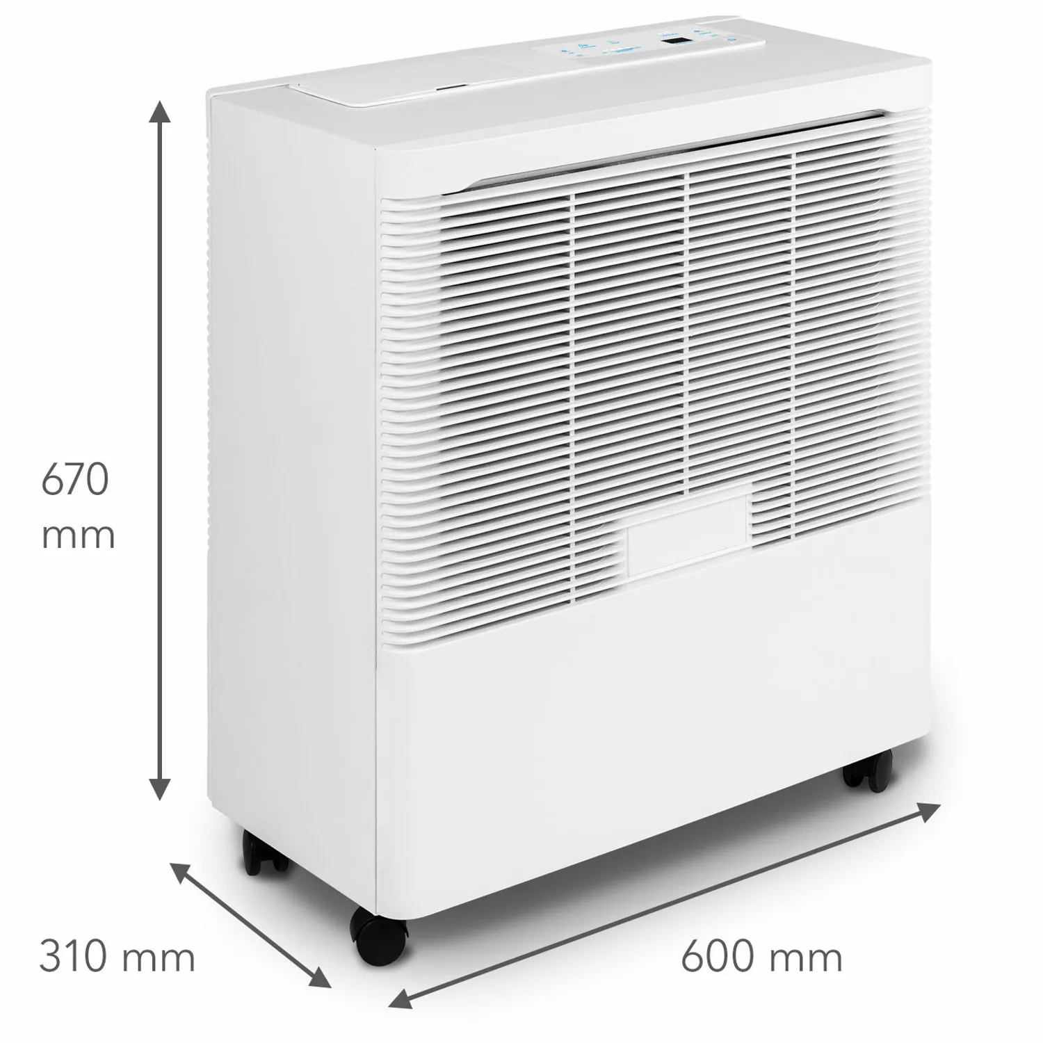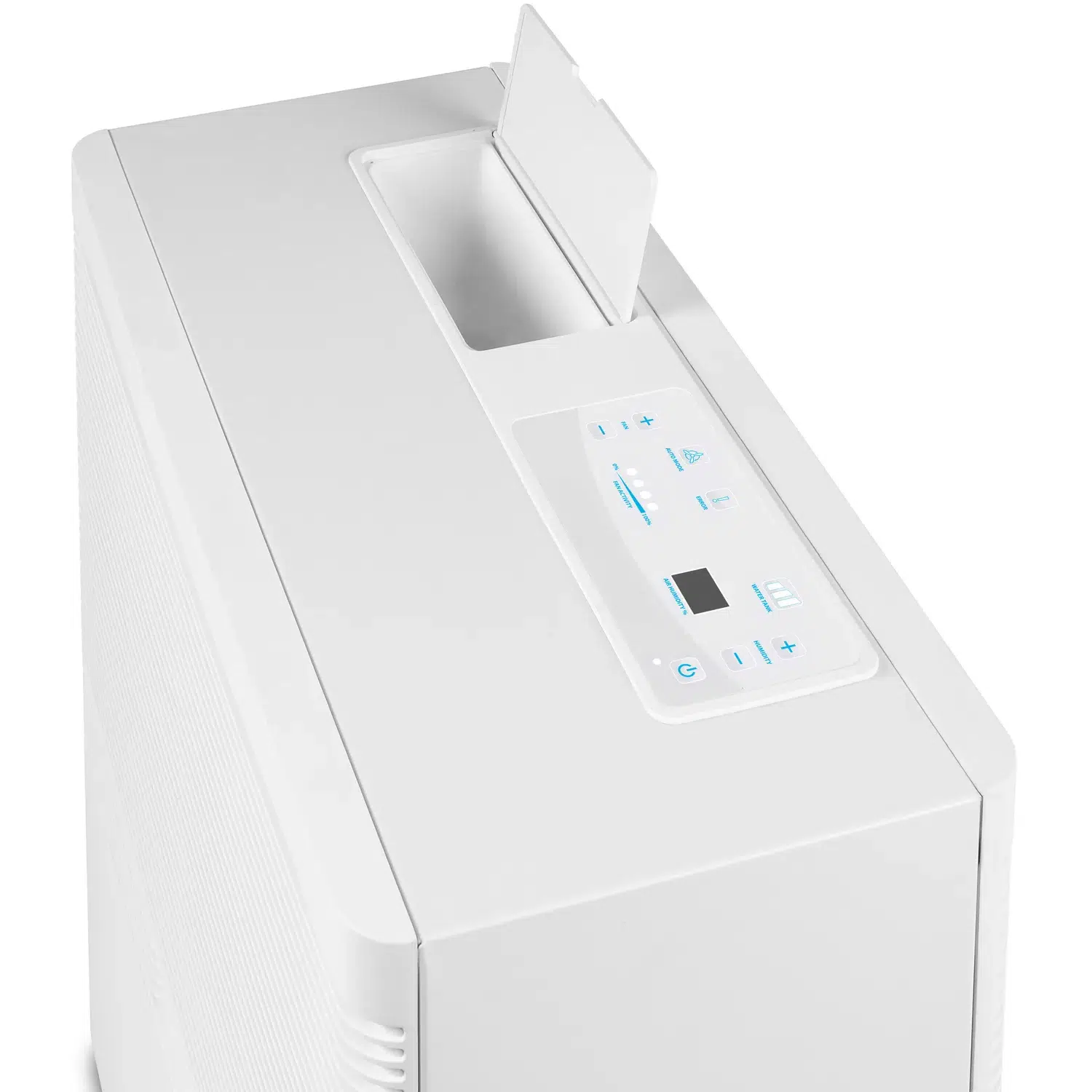 - Elektronisk styring med nøjagtig procentvis måling af luftfugtigheden og automatisk slukning, når vandtanken er tom