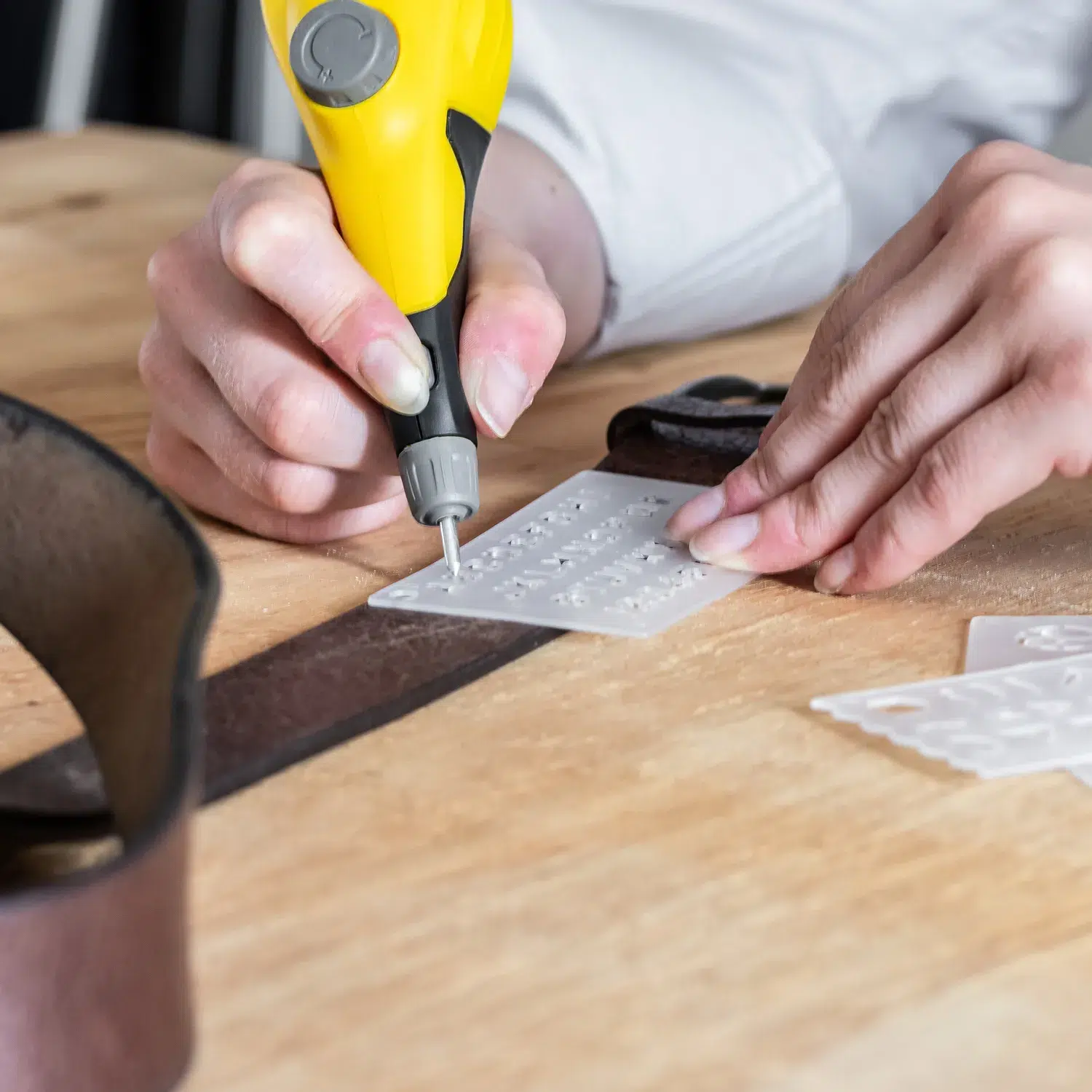 Læder er et af de mest populære materialer til graveringer. Giv dit bælte et individuelt touch eller finjuster, f.eks. Tegnebogen, nøglering, læderrem, bogomslag eller endda en urrem. Tip: Selv kunstlæder og læderlignende materialer kan graveres uden problemer.