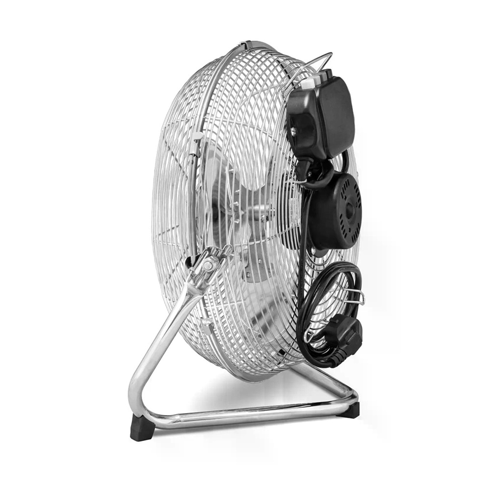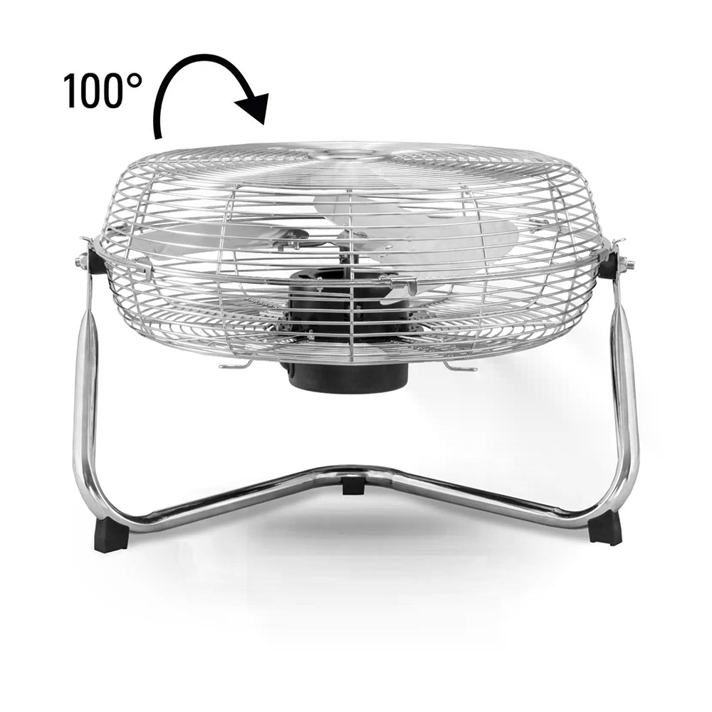 Tre skridsikre gummifødder på undersiden af det forkromede stativbeslag sikrer, at apparatet står sikkert – gulvventilatoren kan nemt modstå selv mindre stød.