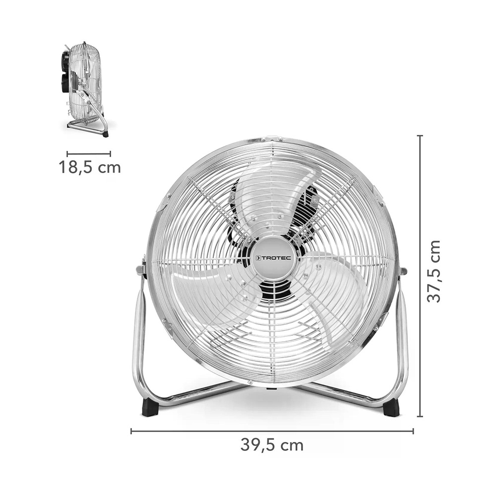 Fra nu af vil dette elegante blikfang i klassisk retrodesign jage den varme og fugtige luft væk og sikre en konstant strøm af kølende luft. TVM 12-gulvventilatoren er udelukkende fremstillet af metal, fra de forkromede blade til det forkromede stativbeslag – selv motoren er udstyret med en kobberspole. Det ser ikke kun elegant ud, men forlænger også hele enhedens levetid.