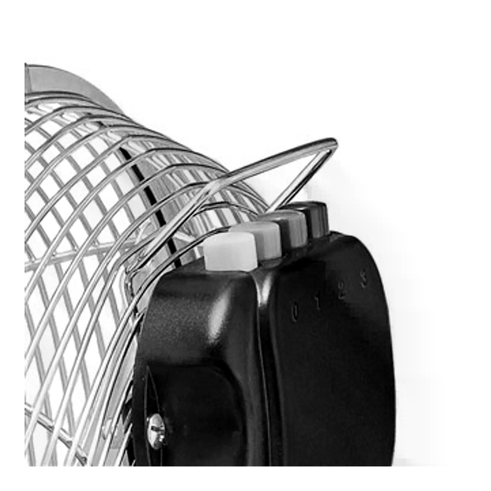 Med sit cool kromdesign er TVM 12 velplaceret i stuen derhjemme og gør også et fremragende indtryk på kontoret takket være sin stille drift. Den elegante vindmaskine giver den rette brise til fotooptagelser, filmset eller filmoptagelser. Takket være det valgfrie væg- og loftsbeslag kan den i øvrigt også bruges i restauranter. Med en effekt på 37 watt og en vingediameter på 12 tommer (ca. 30 cm) genererer retroapparatet desuden en kølig brise på enhver arbejdsplads – fra en let brise til en kraftig vind. Uanset om det drejer sig om ventilation, vindgenerering, vindkøling eller tørring – TVM 12 er alsidig.