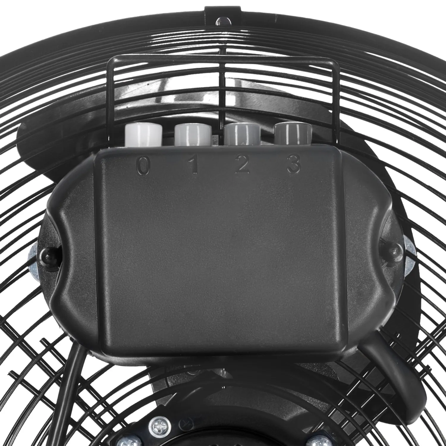Den 35 cm store ventilatorvinge er monteret i en hældningsvinkel, der kan justeres op til 120°. Dette muliggør en fleksibel luftfordeling – f.eks. langs loftet til indirekte køling eller direkte rettet mod et bestemt område. Den stabile hældningsmekanisme tillader en sikker indstilling selv under drift.