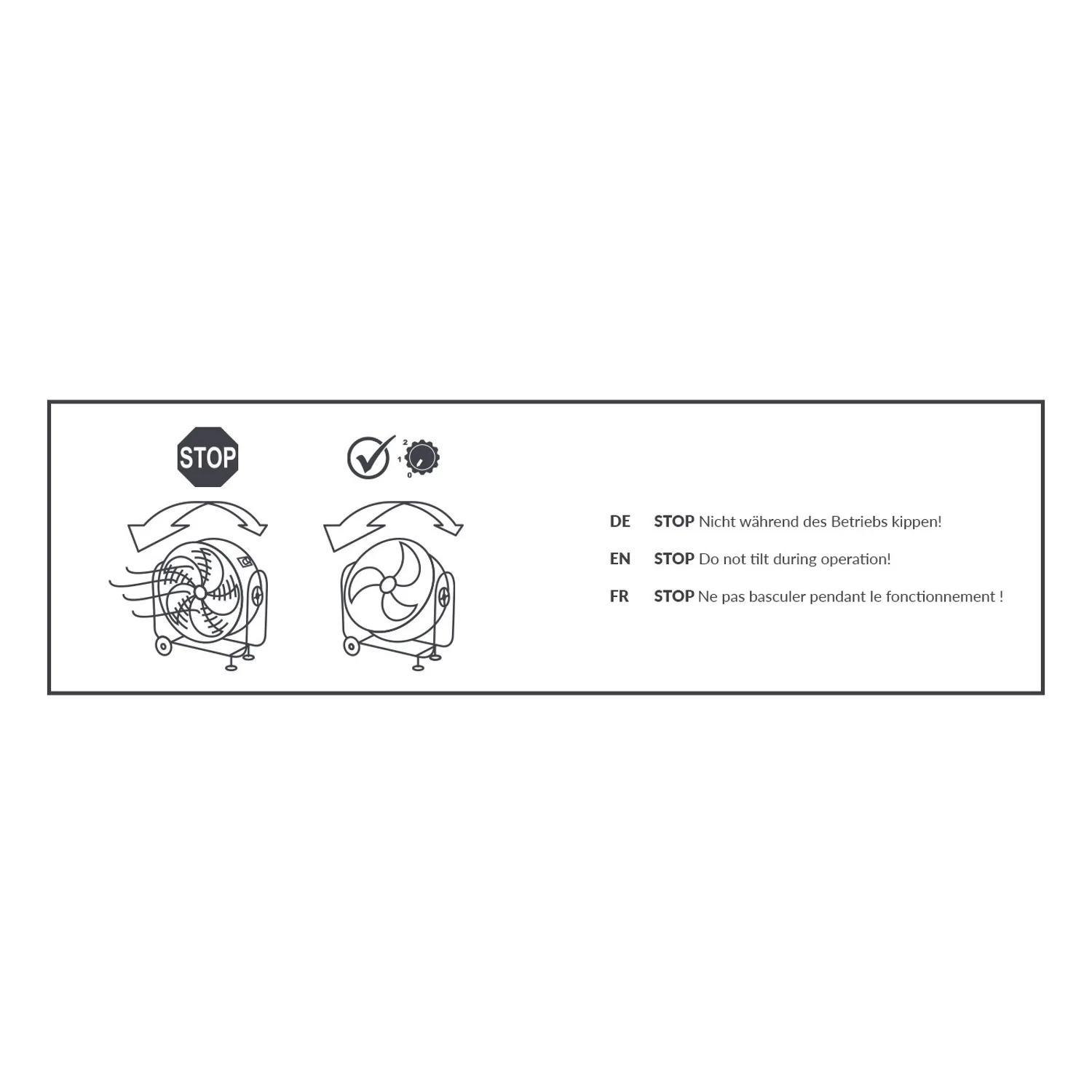 Ventilatorhovedet kan vippes op til 120° og muliggør en meget præcis justering af luftstrømmen. Således kan luftstrømmen rettes direkte mod personer eller til generel rumkøling. Justeringen sker trinløst og mekanisk stabilt.