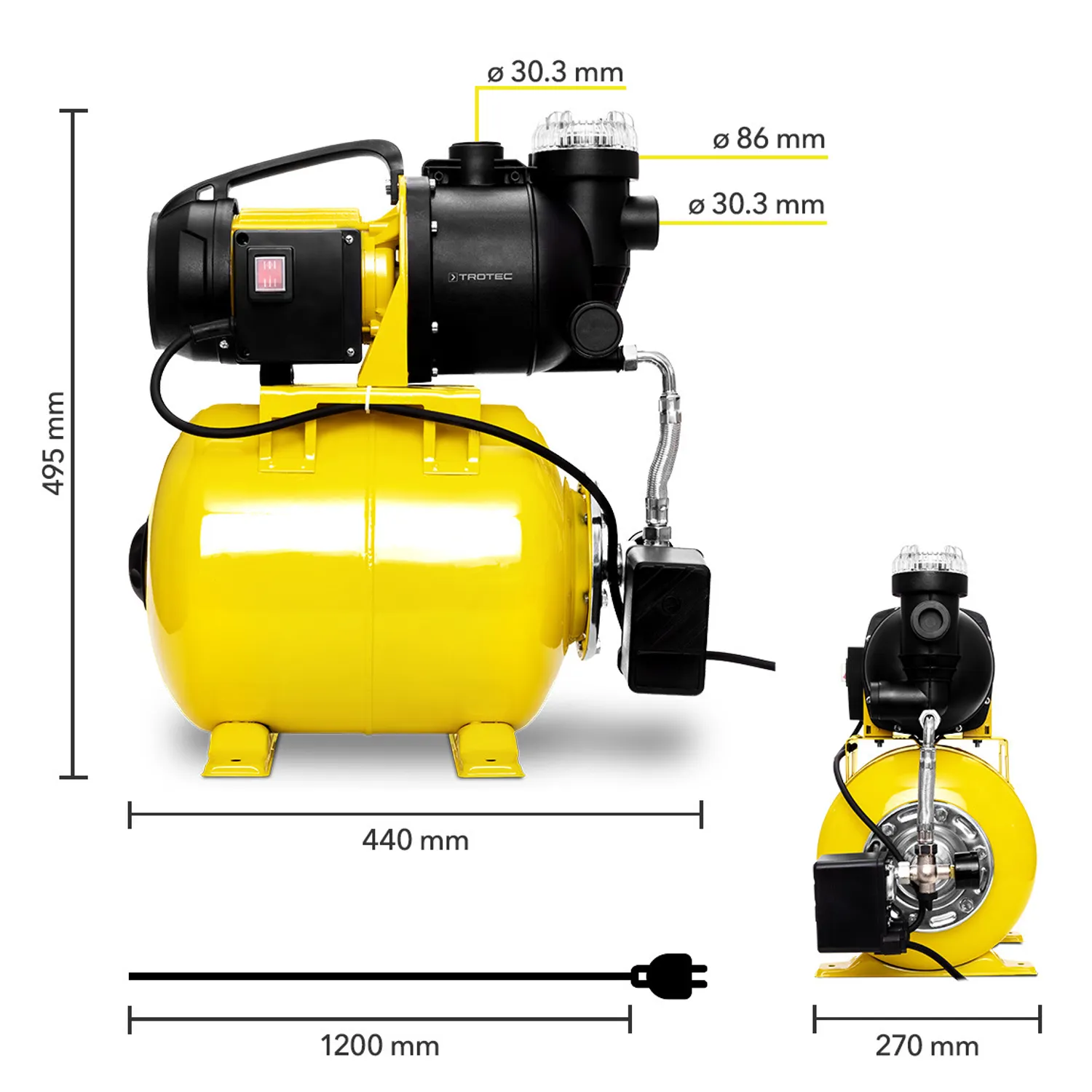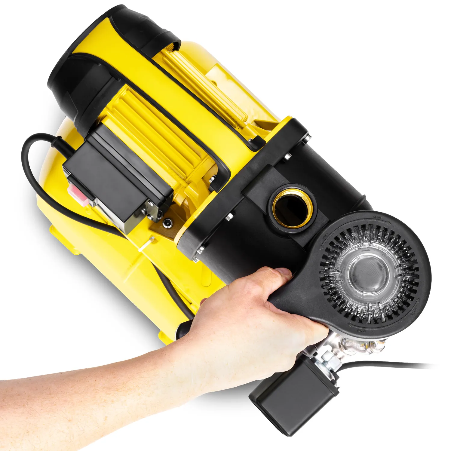 Pumpen på 1.000 W leverer op til 3.500 l/t over en højde på op til 30 m med en maksimal sugehøjde på 7 m. Der er integreret et forfilter til snavsfrit vand, som filtrerer grove snavspartikler fra og dermed beskytter pumpen mod skader og forhindrer forurening af sprinklerdyser.