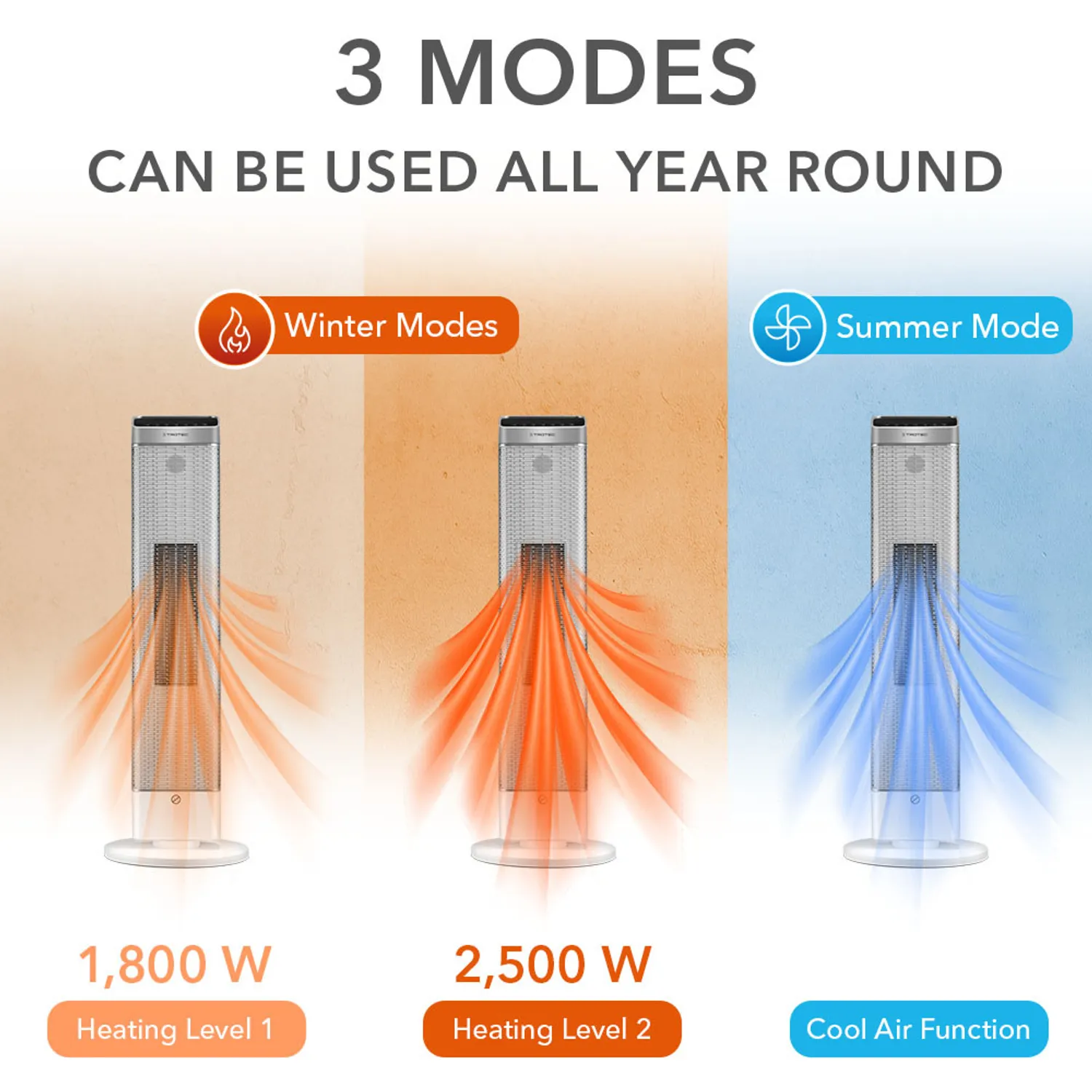 Glem alt, hvad du vidste om konventionelle varmeblæsere, og oplev en helt ny måde at opvarme på med den tidløst smukke keramiske varmeblæser TFC 25 E. Den stilfulde elektriske varmeblæser med PTC-keramisk varmeelement og praktisk fjernbetjening kombinerer fremragende produktdesign med fremragende varmeydelse. Allerede ved første øjekast er det tydeligt, at den slanke og kantløse designvarmeblæser med sit elegante udseende gerne vil være i centrum. Der er ingen grund til at skjule den. Med det integrerede bærehåndtag, det kontrasterende sorte LED-kontrolpanel og den robuste base passer den stilfulde, hurtige varmeblæser ind i moderne bolig- eller kontormiljøer som ingen anden. Særligt praktisk: På varme dage kan varmeblæseren bruges til at give behagelig friskhed i koldluftstilstand med varmefunktionen deaktiveret. Takket være vintertilstand (opvarmning) og sommertilstand (ventilation) kan 2-i-1-varmeblæseren bruges hele året rundt.