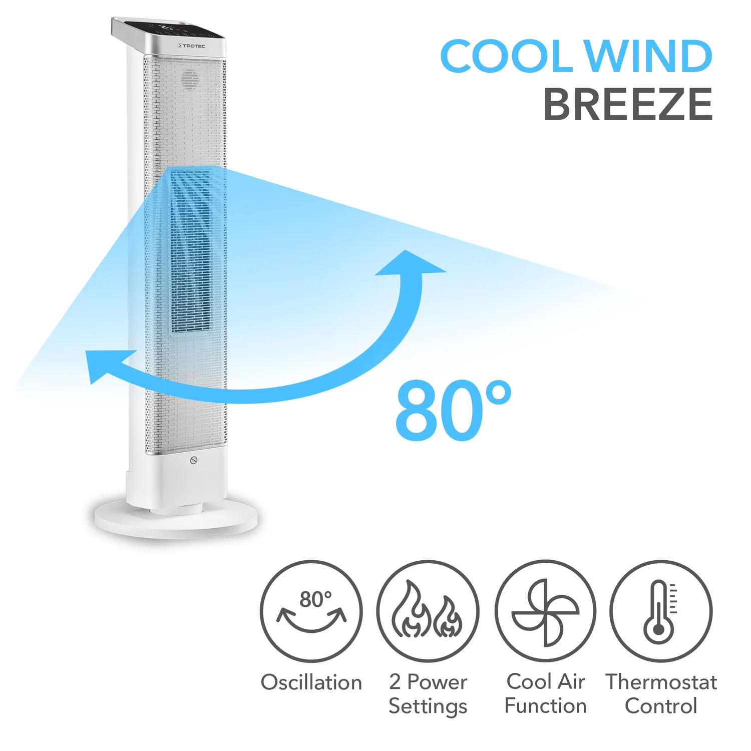 - Omskiftelig 80°-oscillation for hurtigere luftfordeling