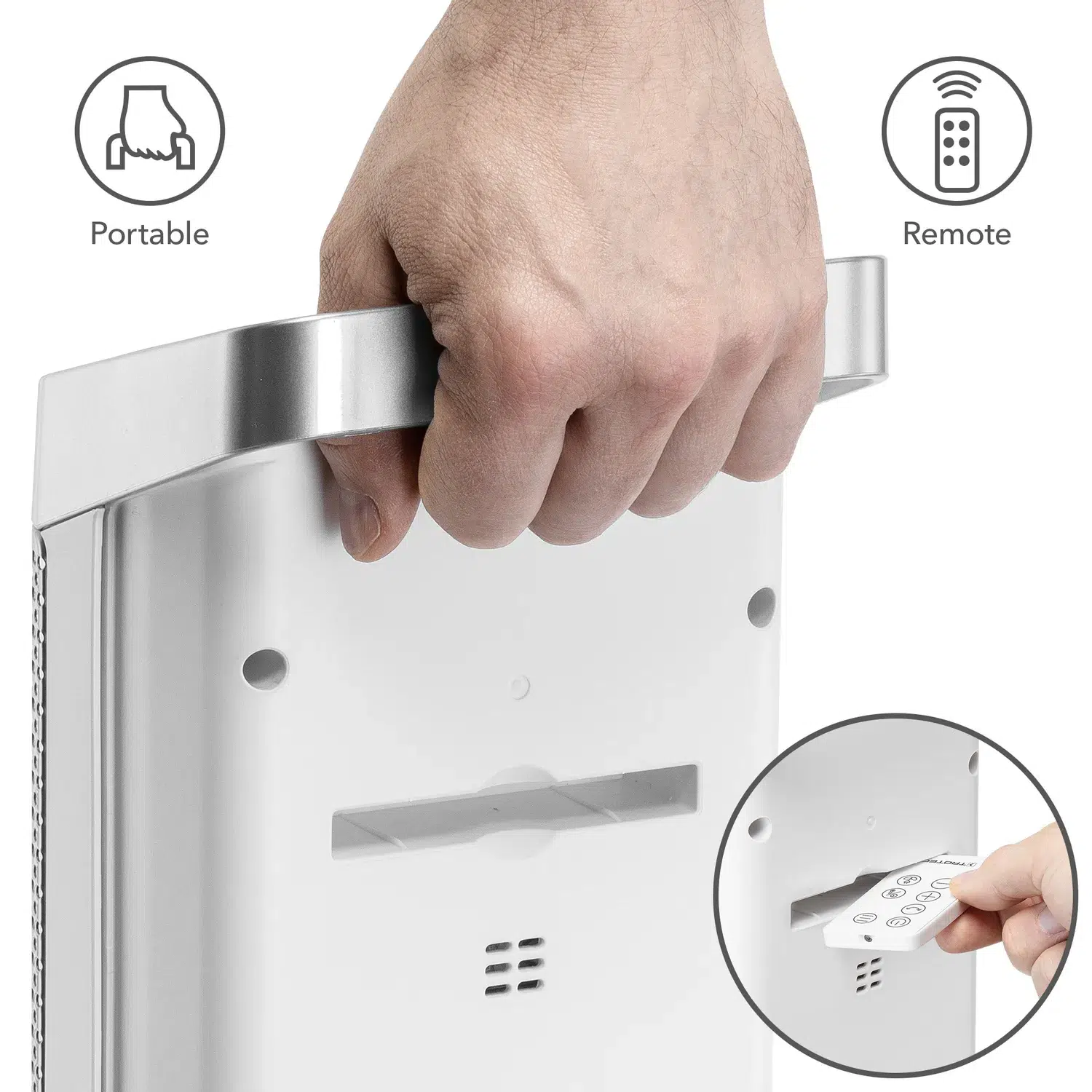 Når det bliver koldt, er du nødt til at handle hurtigt. Ellers går det ud over dit velbefindende og dit humør. Derfor spilder TFC 25 E ingen tid på at varme op. Du skal blot tænde den og straks nyde den varme luftstrøm fra varmeapparatet. Og hvis du ikke længere vil gå glip af den behagelige varme, tager du bare den keramiske varmer med dig. Transporthåndtaget, der er integreret i apparatet, gør det let at flytte den kompakte varmer.
