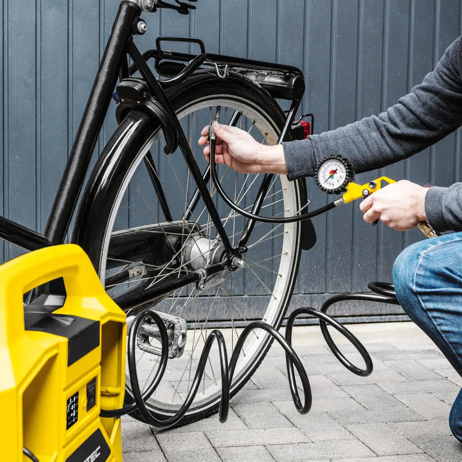 Hvis du ønsker at kontrollere hurtigt dæktrykket på køretøjet før ferierejsen, og fylde det slappe cykeldæk op med luft til sæsonens start eller oppumpe fodbolden skudsikkert før spillet med den kraftige kompressor PCPS 10-1100 fra Trotec er alle disse opgaver intet problem – og kan bekvemt udføres direkte hjemmefra.