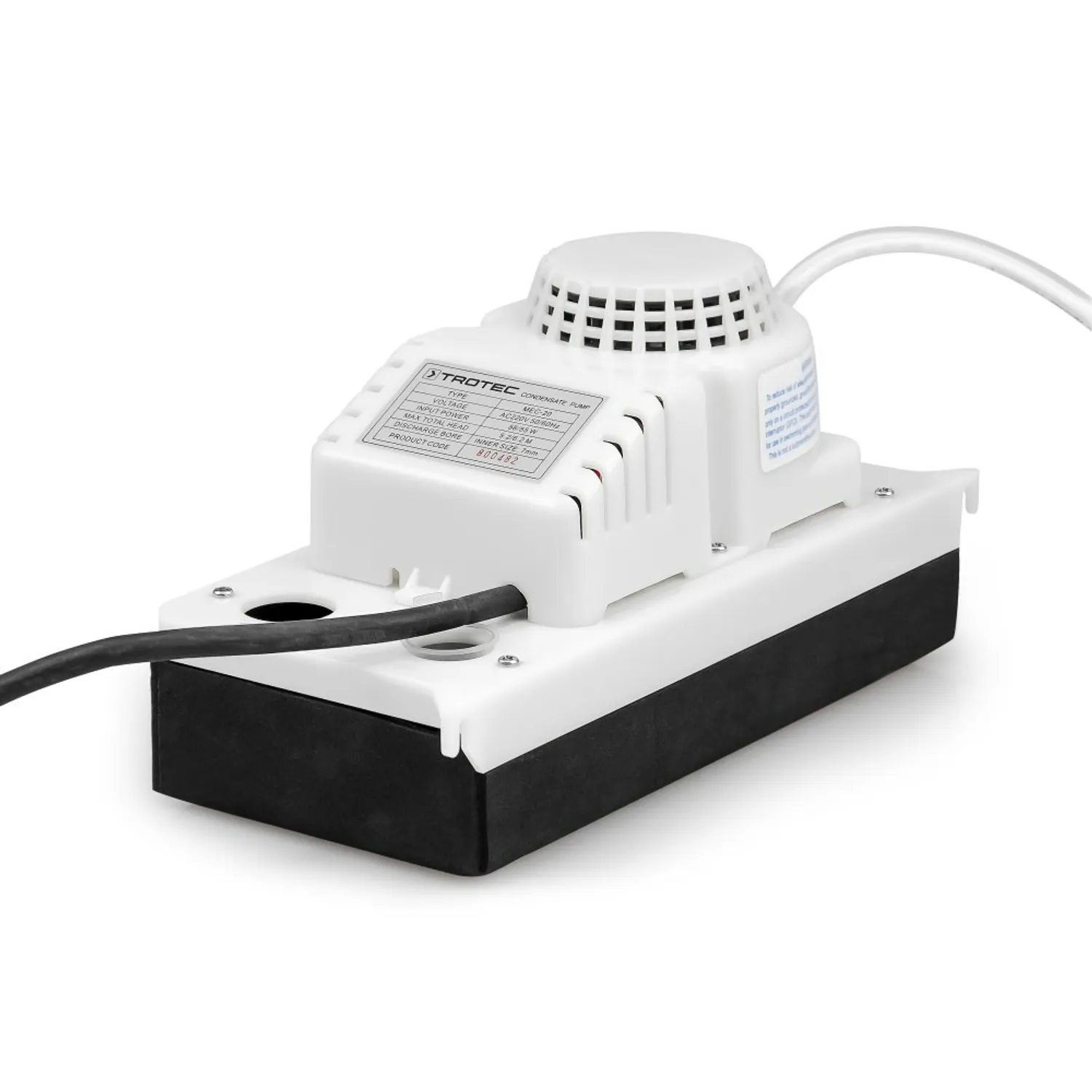 Effektiv og pålidelig TROTEC Kondensatpumpe til fjernelse af kondensvand. Pump vand op til 4 meter lodret og 50 meter vandret. Ideel til hjemmebrug og kommercielle applikationer. Beskyt dine enheder mod skader og oprethold et sundt miljø.