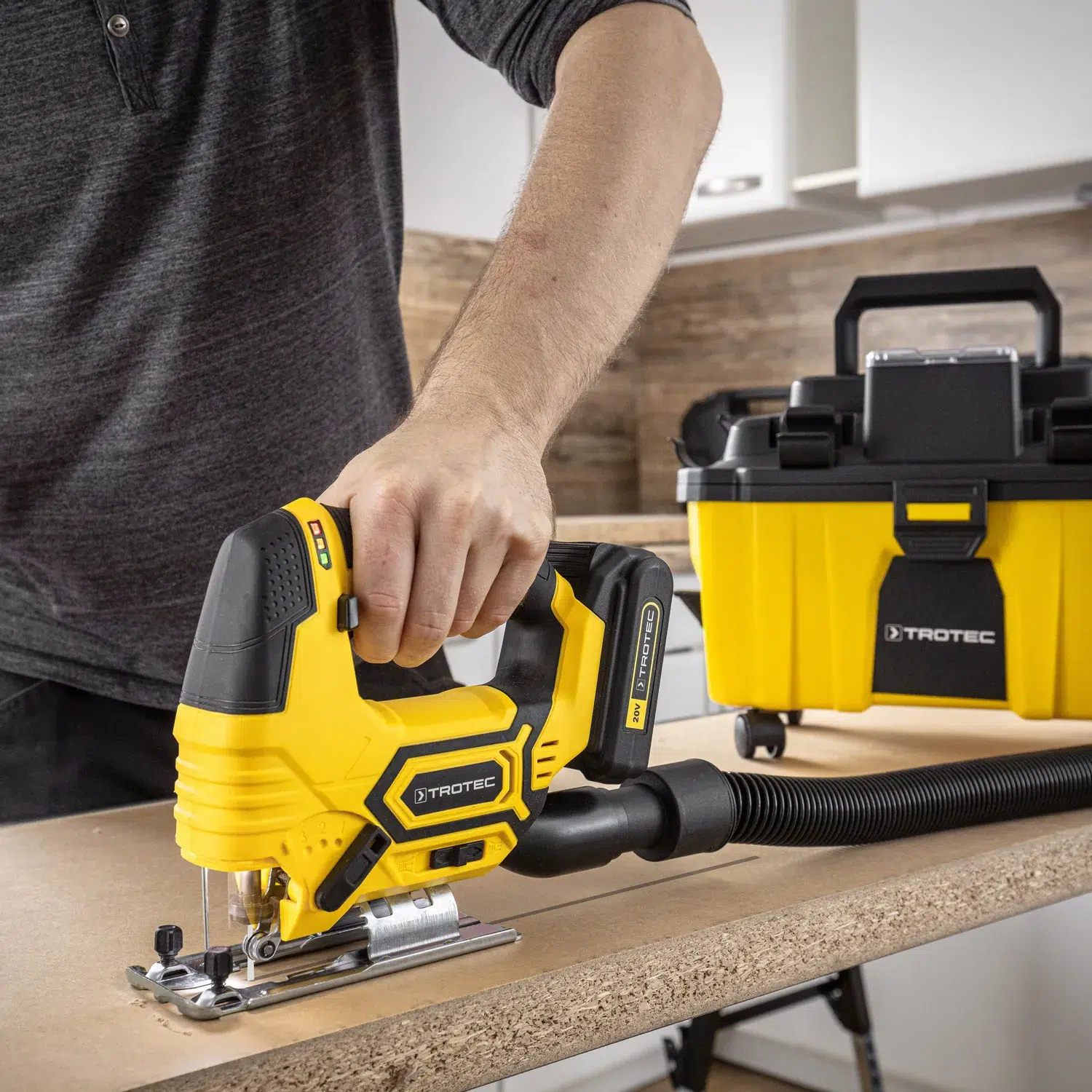 Standardleveringen af dette Trotec-elværktøj omfatter allerede et kraftigt 20 V multibatteri fra Trotec Flexpower-programmet med en høj opladningskapacitet på 2 Ah. Den tretrins kapacitetsindikator, der er integreret i batterihuset, giver dig et hurtigt overblik over den aktuelle status.