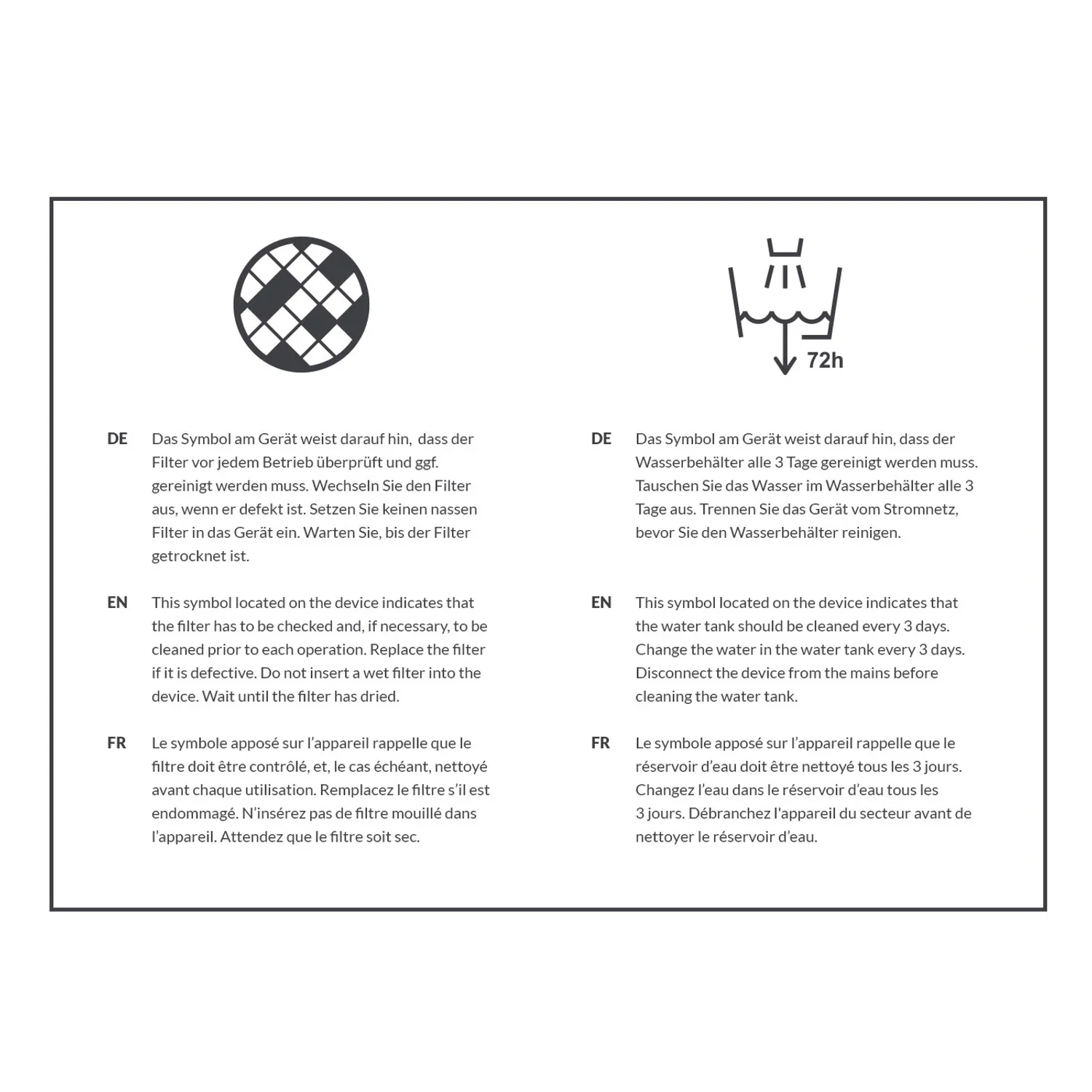 Løber luftbefugteren tør for vand stopper den automatisk og på betjeningspanelet oplyses advarselsblink. Opfyldning med vand foregår nemt og hurtig.