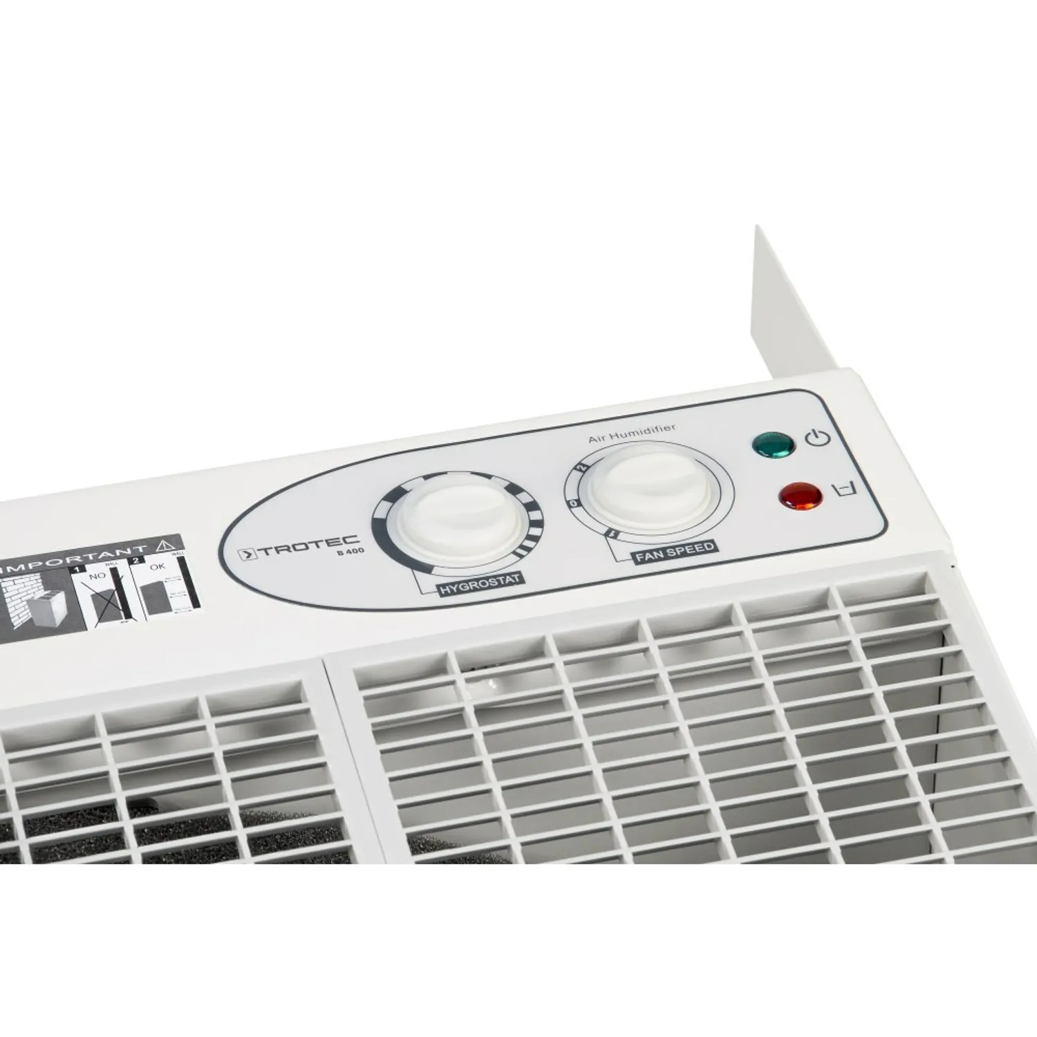 Gennem permanent rotation bliver den indsugende luft effektiv vasket og samtidig beriget med fugtighed. Derefter bliver den nedbørsløse luft blæst ud i to valgbare trin. Den næsten lydløse synkronmotor af B 400 befugter muliggør en pålidelig luftbefugtning op til større rum ved et lavt el forbrug.