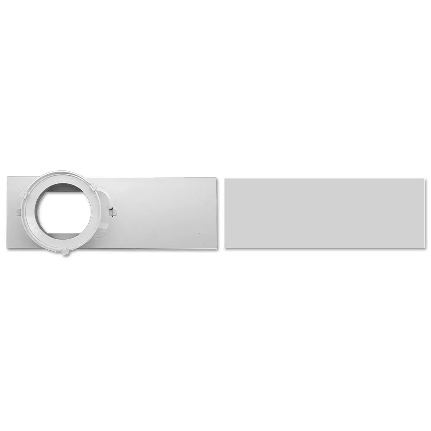 PAC vinduesafskærmningen består af fire dele. Hvis vinduet er for stort til afskærmningen, kan op til to ekstra dele indsættes i afskærmningen (til venstre eller højre) for at tilpasse bredden. Den medfølgende slangedapter trækkes over det åbne endestykke af aftræksslangen. For en aftræksslang med diameter på 150 mm passer adapteren uden yderligere hjælpemidler. Adapteren clipses blot ind i åbningen på vinduesafskærmningen. To indbyggede fastholdelsespuder sikrer en sikker fastgørelse og forhindrer, at adapteren løsner sig ved bevægelse af aftræksslangen.