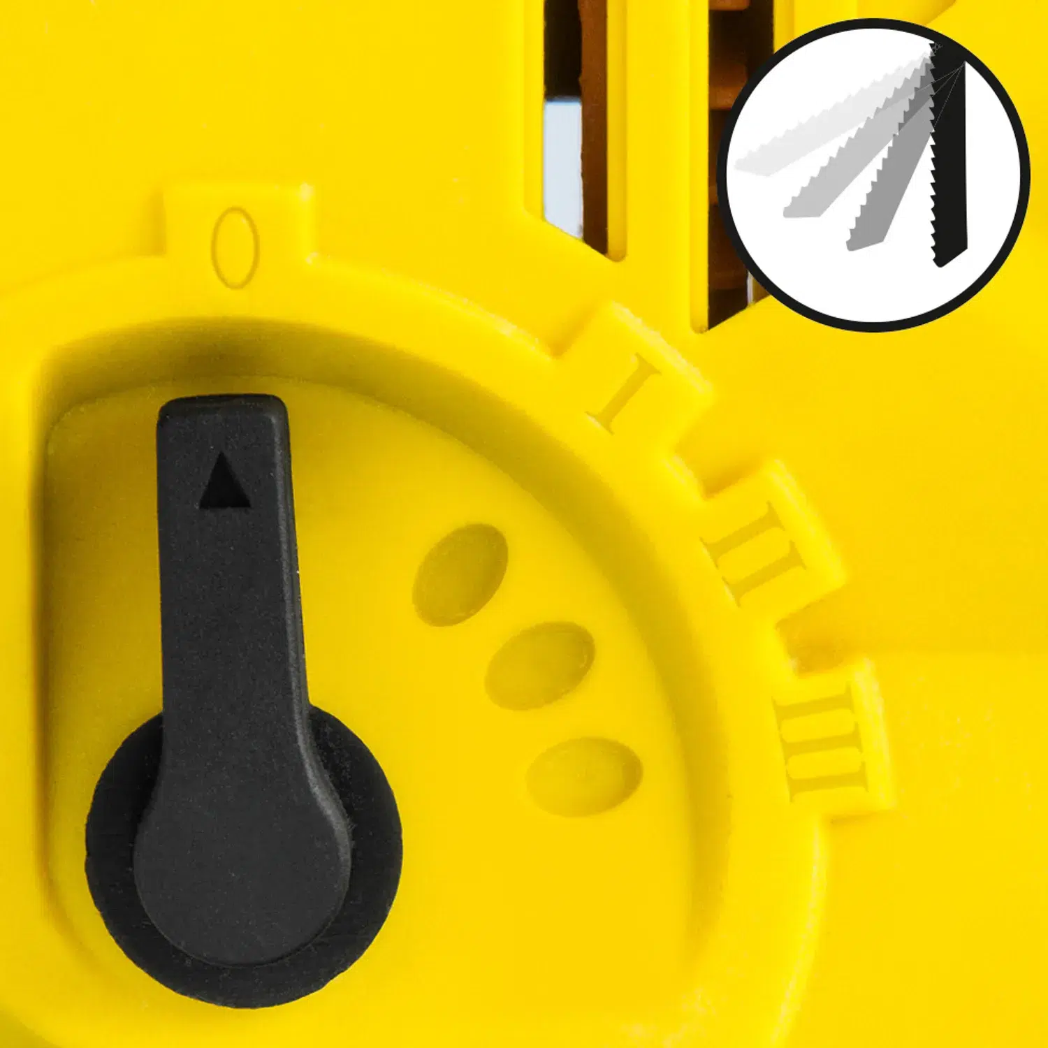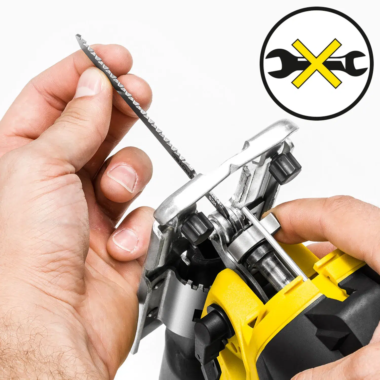 - Hurtigspændesystem til værktøjsløs skift af savebladet på få sekunder