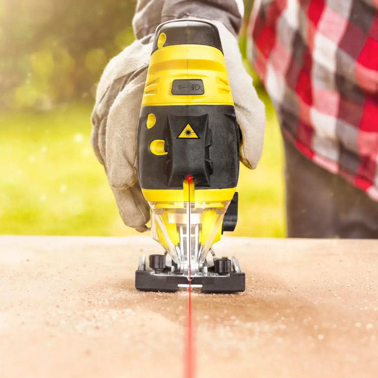 - Indstilleligt laser-føringslys til markering af snitlinjer