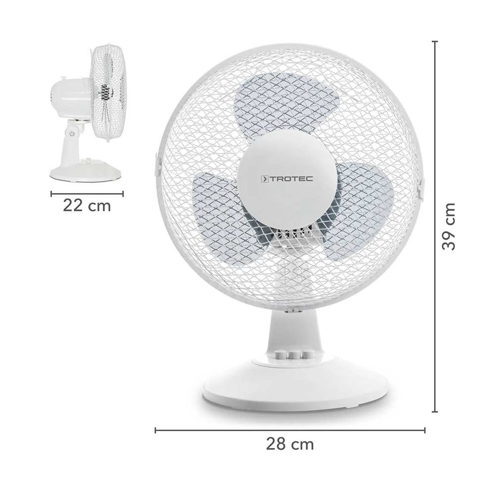Støjsvag bordventilator TVE 10 med 80° svingning | 25 W