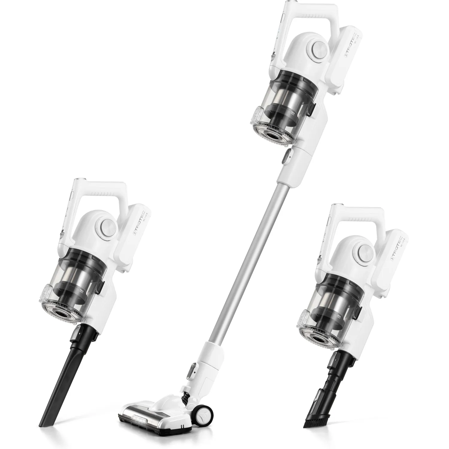 Et elektrisk apparat må ikke mangle i nogen husstand: støvsugeren! Fordi den praktiske hjælper altid er der, når det kommer til daglig rengøring af overflader eller intensiv rengøring af dybtliggende snavs i tæpper. I modsætning til ledninger er en trådløs støvsuger hurtigere at håndtere og klar til brug hvor som helst. Trotec VC 150 E trådløs opretstående støvsuger giver en anden fordel: Afhængigt af formålet kan den konverteres fra en opretstående støvsuger til en lille håndholdt støvsuger på ingen tid.
