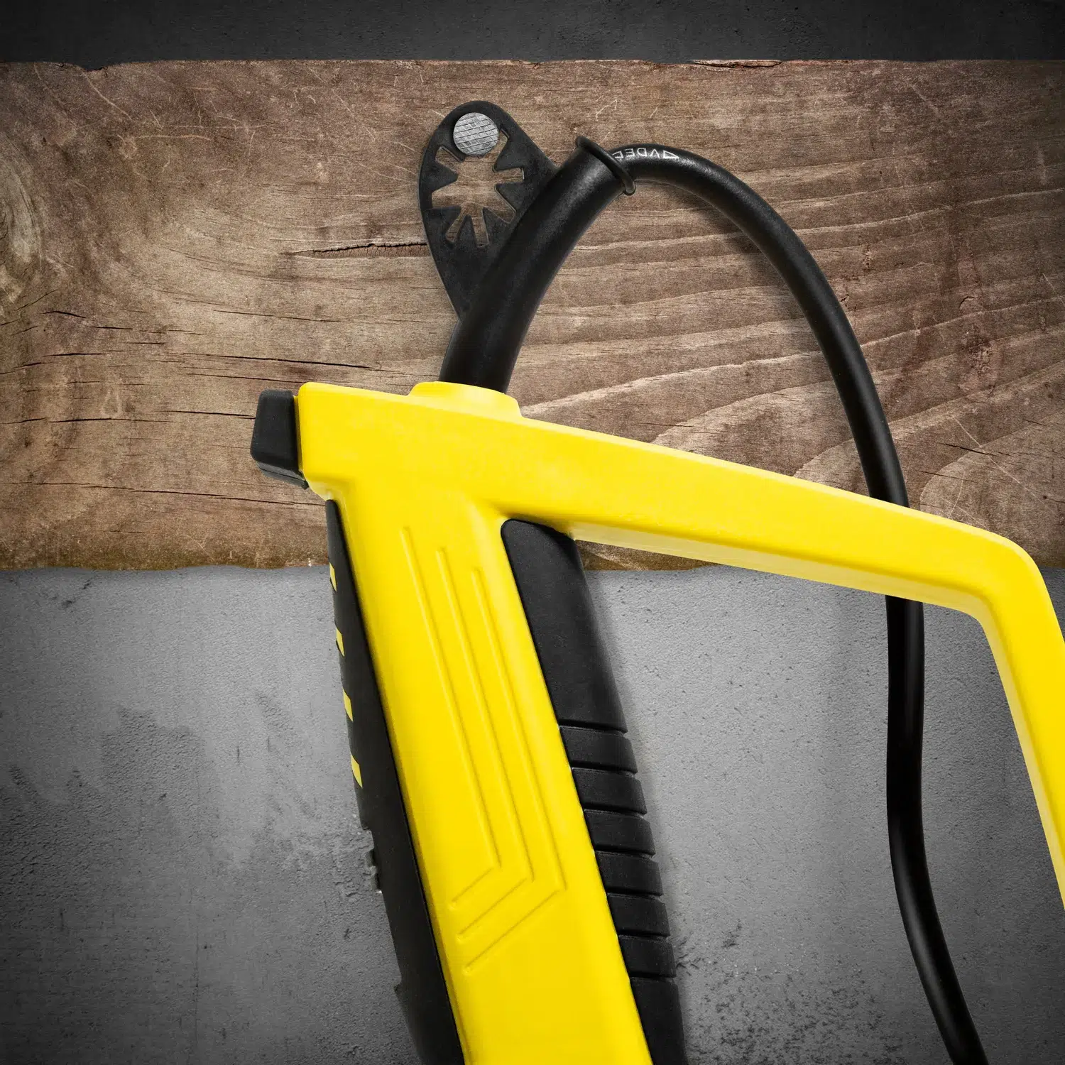 HyStream 2100 er lige så nem at bruge. Vægten på kun 800 g har en mærkbar træthedsreducerende effekt, især ved længerevarende arbejde. træthed og det ergonomiske design af dette varmluftsapparat varmluftsværktøj med pistolgreb med softgrip og beskyttelsesstang og beskyttelsesstang sikrer både komfortabelt arbejde og et sikkert greb.