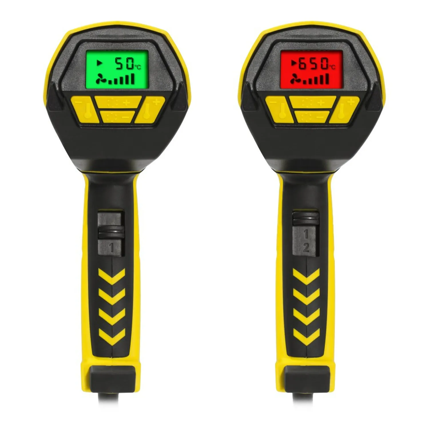 Varmluftsværktøjet er elektronisk styret og sikrer dermed en konstant arbejdstemperatur på værktøjet, selv ved kontinuerlig drift – et must selv ved kontinuerlig drift – et must til særligt præcist lodde- og svejsearbejde. svejsearbejde. Derudover er der integreret overophedningsbeskyttelse, som automatisk slukker for varmeelementet i tilfælde af overbelastning, mens ventilatoren blæseren forbliver i drift.