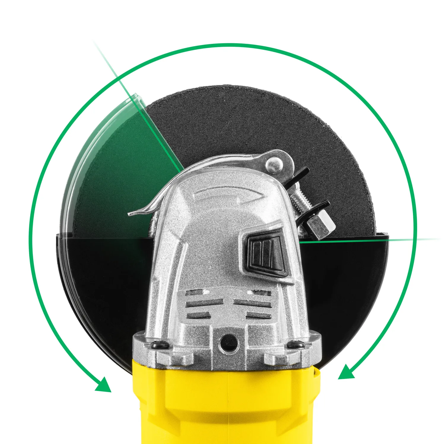 Hurtig justering giver dig mulighed for altid at placere vinklen på skiven og børstebeskyttelsen, så du effektivt kan forhindre skader ved utilsigtet kontakt med flexskiven eller ved flyvende skivefragmenter og gnister. For at mindske risikoen for utilsigtet eller uautoriseret brug er tænd/sluk-knappen desuden sikret med en tænd/sluk-lås. Det 3 m lange og robuste gummikabel sikrer en stor arbejdsradius og fuldender vinkelsliberens praktiske funktioner.